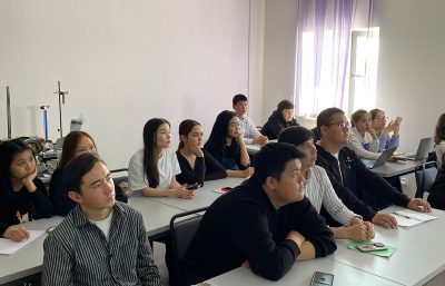 Сабақ соңында студенттер естелік суреттерге түсіп, қызықтырған сұрақтарға жауап алды.