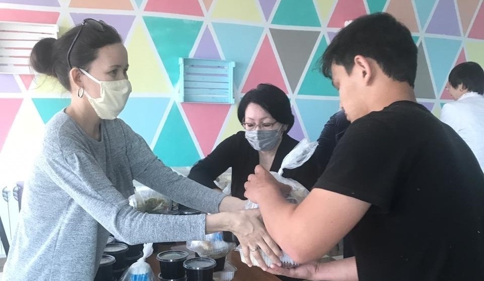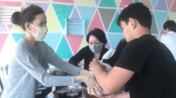 Карантин жағдайында тағам арнайы ыдыста байланыссыз таратылды.