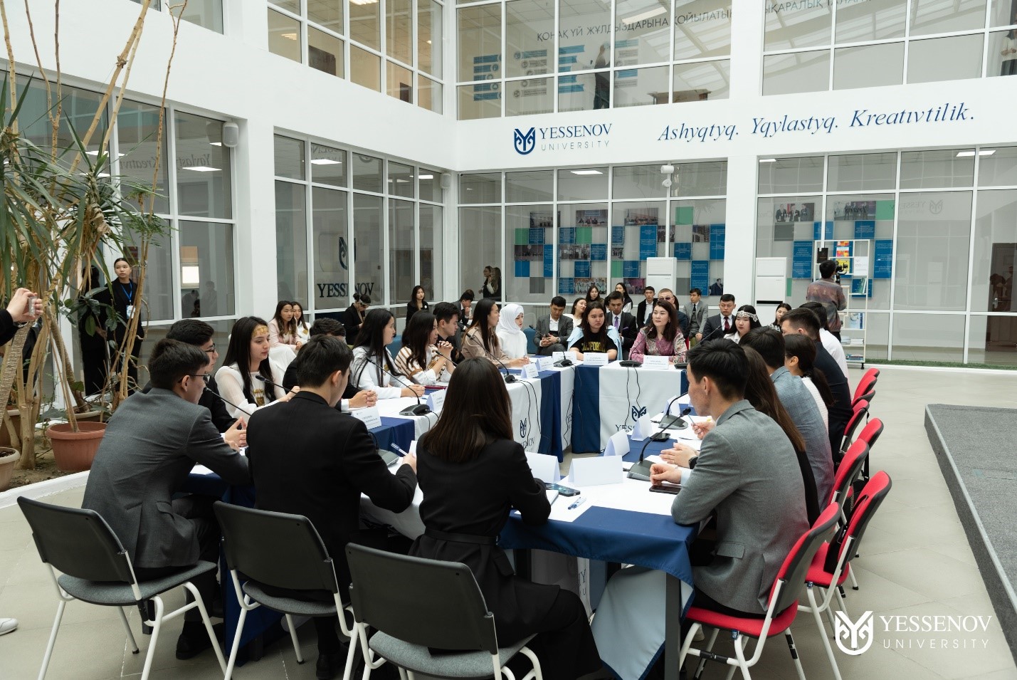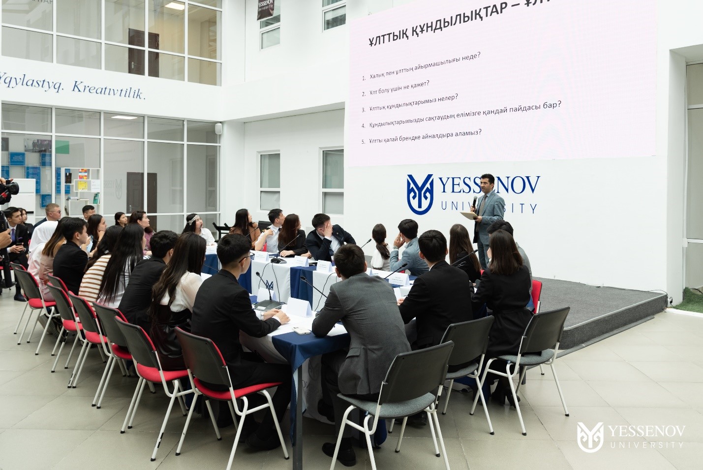 Yessenov University UNION студенттік кеңесінің ұйымдастыруымен, Әлеуметтік қолдау көрсету және жастарды дамыту басқармасының қолдауымен форумға Ақтөбе, Атырау, Батыс Қазақстан облыстарындағы жоғары оқу орындарының студенттері қатысты.