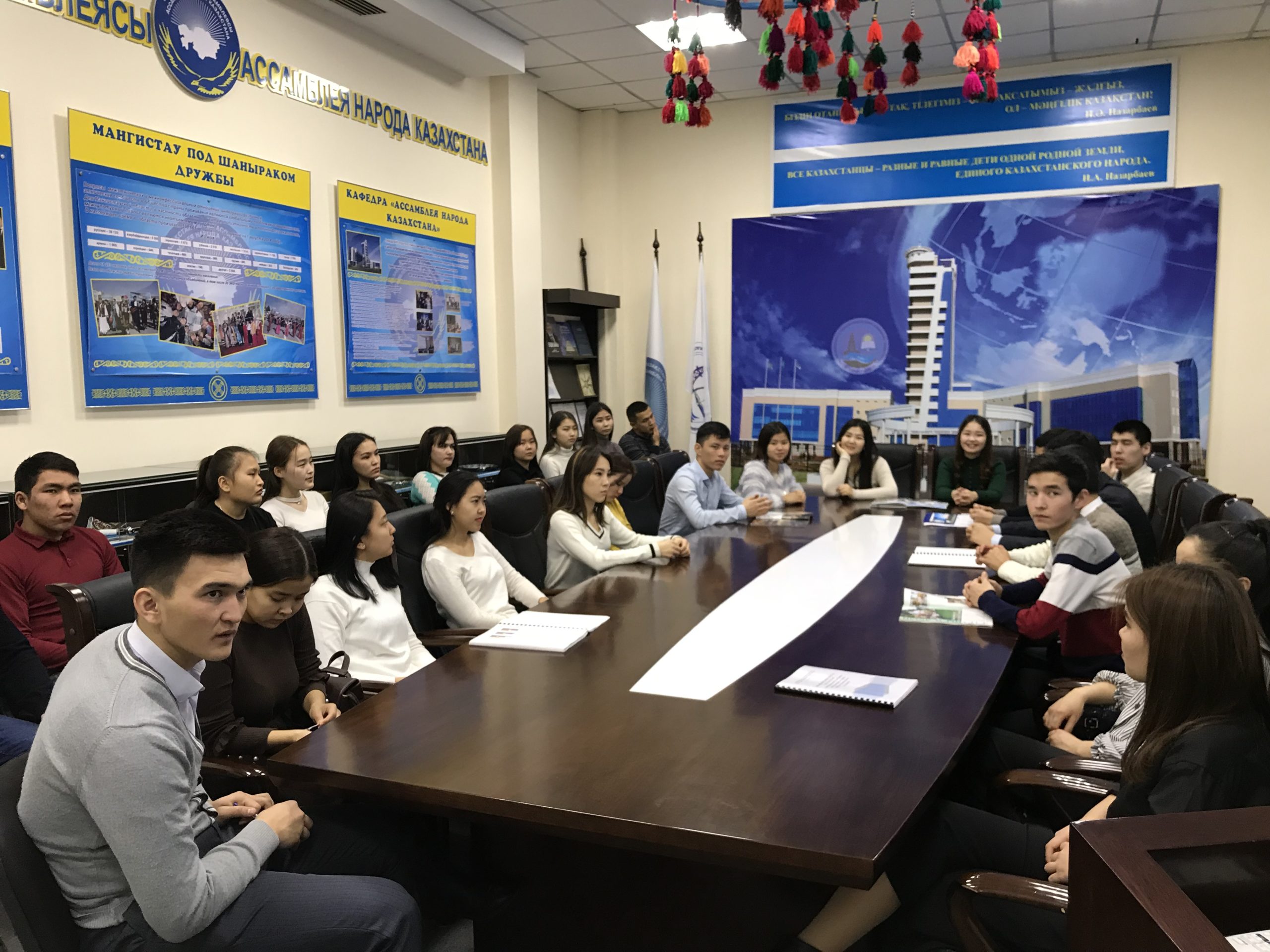 «Қазақстан халқы Ассамблеясы» кафедрасының оқытушысы Бағдатұлы Міржақып 1 – наурыз «Алғыс айту күніне» орай «Алғыс айту күні – Қазақстан халықтарының бауырмалдығы мен мейірімділігінің белгісі» тақырыбында дөңгелек үстел өтті.