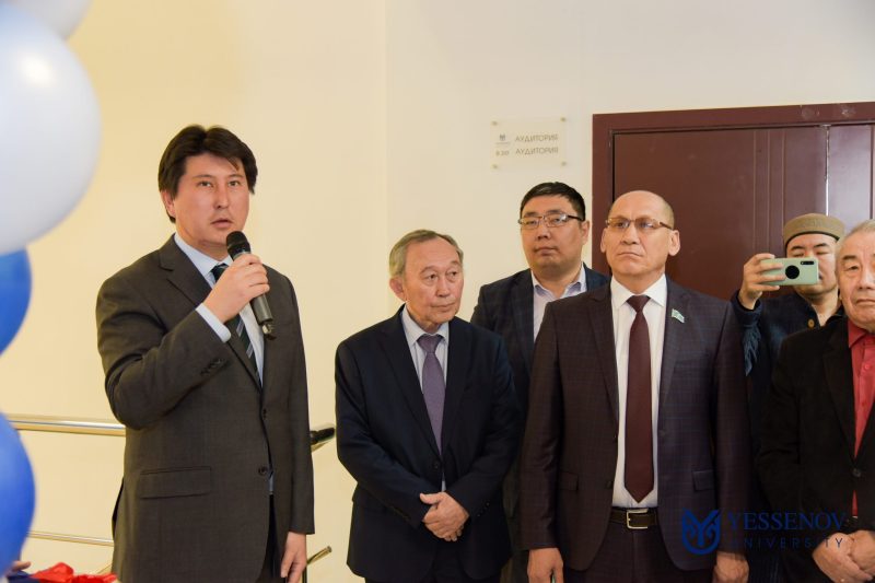 7 сәуір күні Yessenov University бас ғимаратында техника ғылымдарының докторы, профессор Алпамыс Оразауханұлы Айтқұловтың атына оқу аудиториясы ашылды.
