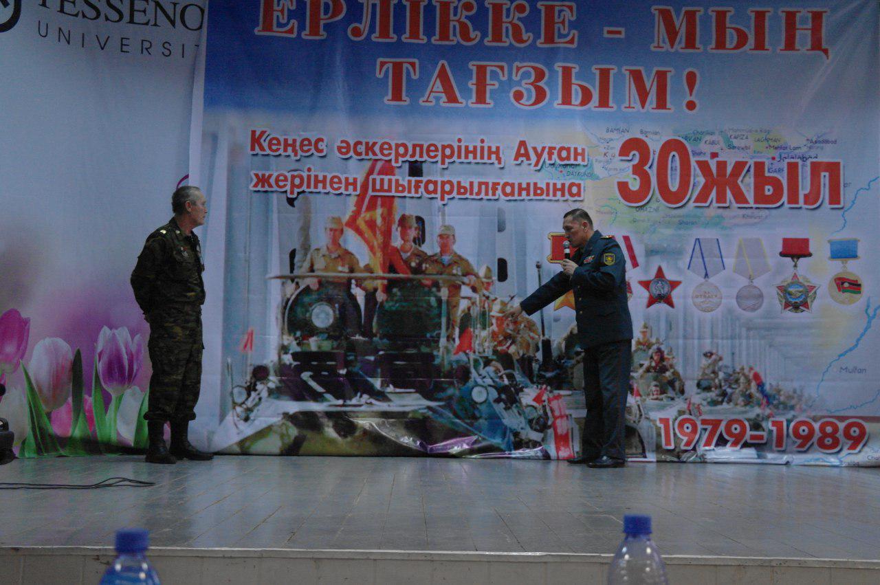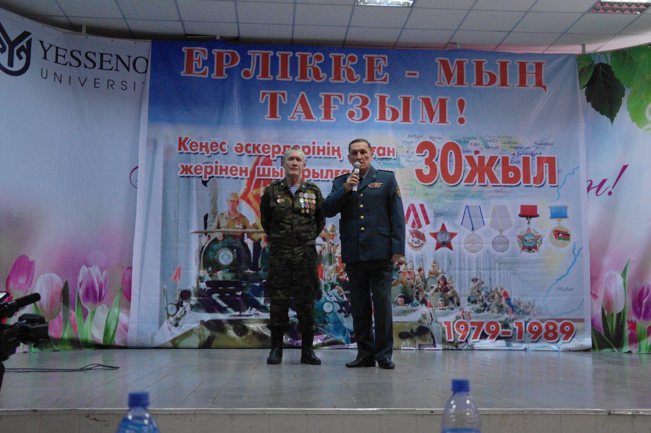 Yessenov University-дің әскери кафедрасының студенттері Ауғанстан Демократиялық Республикасынан Кеңес әскерлерінің шығарылғанына 30 жыл толуына орай мерекелік кеш өткізді, оған запастағы полковник Тоқманбет Сұлтан Әбуұлы әскери кафедраның аға оқытушысы және запастағы сержант Қызыл Жұлдыз орденінің кавалері Абдухалыков Дарбек шақырылды.