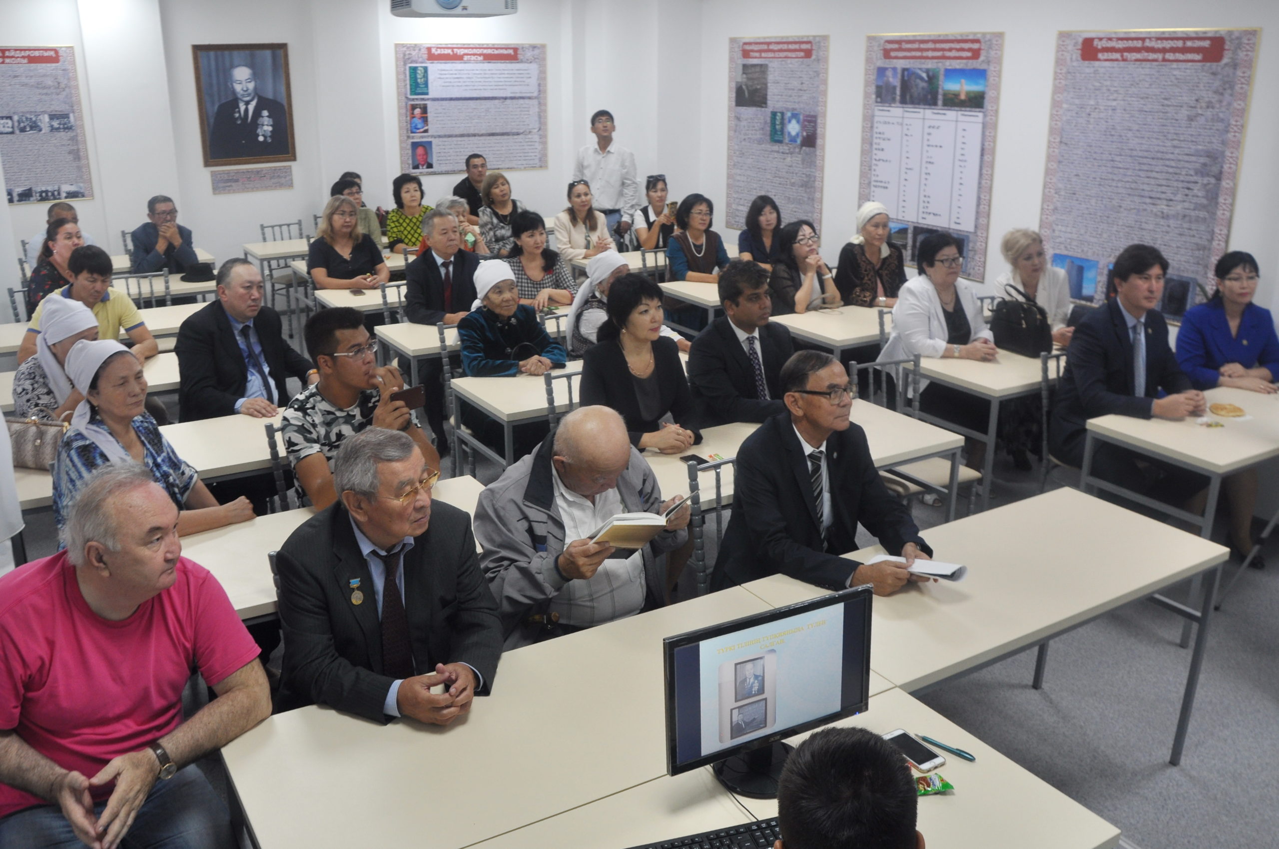 Салтанатты түрде ашылған Ғұбайдолла Айдаров атындағы оқу аудиториясын «Қазақ филологиясы» кафедрасының меңгерушісі А.Н.Отарова таныстырып өтті.