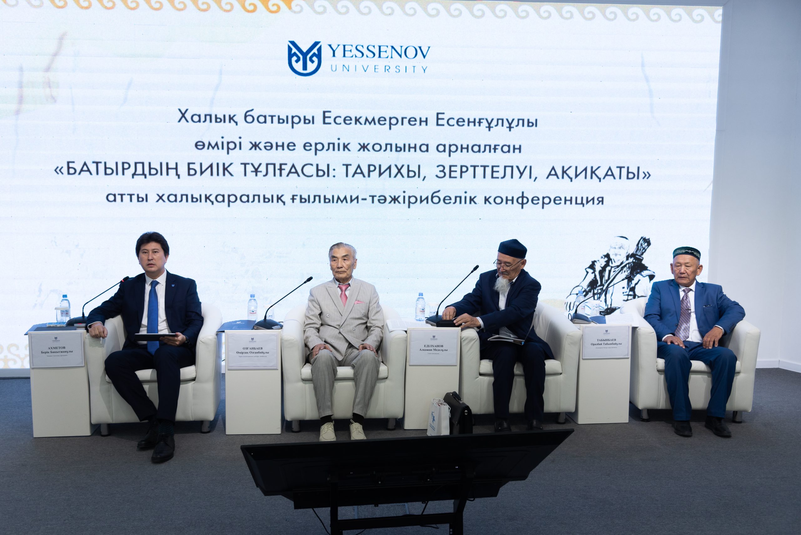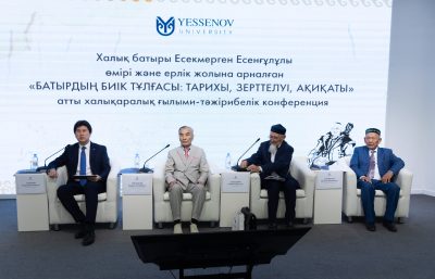 3 қараша күні Yessenov University конференц-залында Халық батыры Есекмерген Есенғұлұлының өмірі мен ерлік жолына арналған «Батырдың биік тұлғасы: тарихы, зерттелуі, ақиқаты» атты халықаралық ғылыми-тәжірибелік конференциясы өтті.