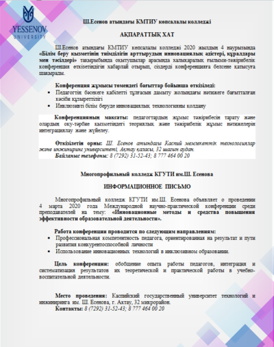 «Білім беру қызметінің тиімділігін арттырудың инновациялық әдістері, құралдары мен тәсілдері»