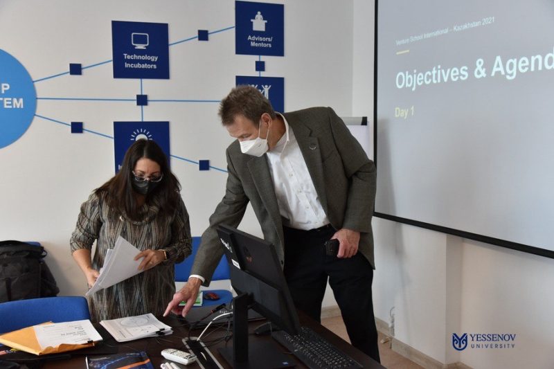 Екі ел ынтымақтастығы аясында Есенов университетінің Каспий кәсіпкерлік орталығы базасында Адъюнкт-лектор-нұсқаушысы Грегг Баркус «Кәсіпкерлік негіздері» оқу бағдарламасының оқытушы-менторларына арналған 3 күндік күндізгі тренинг өткізеді. Тренингте ұстаздар бизнес пен корпорацияларды дамыту, капиталдандыру және орындау стратегиялары, сондай-ақ технологияларды пайдалану туралы үйренеді.