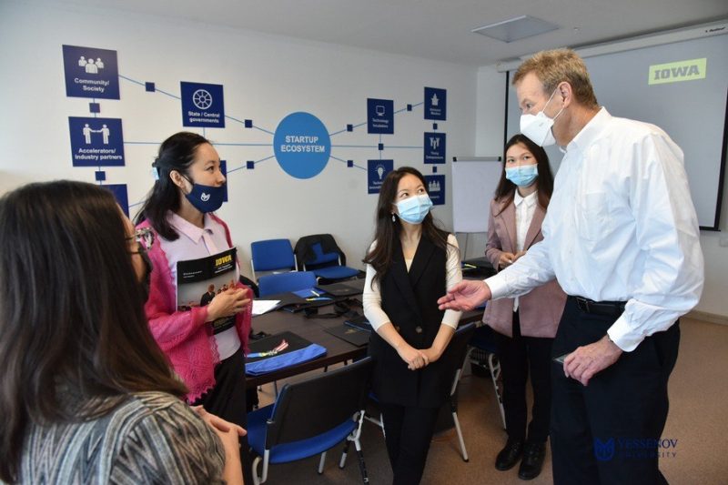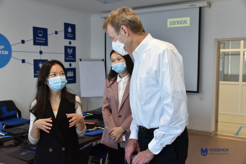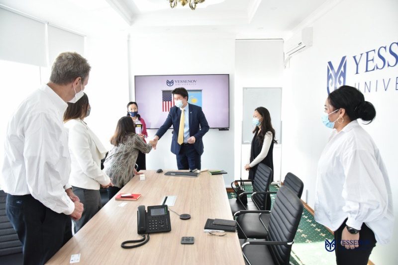2 қараша күні Yessenov University Президенті Берік Ахметов АҚШ Елшілігінің мәдениет және білім мәселелері жөніндегі атташесі Эмбер Ора және Айова (АҚШ) университетінің өкілдерімен кездесті.