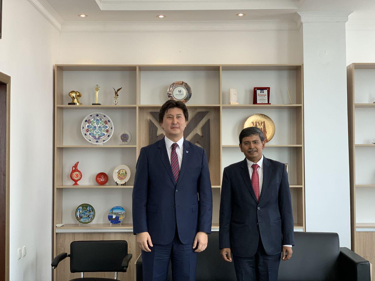 Yessenov University басшылығы Үндістанның Қазақстандағы Елшісі Прабхат Кумар мырзамен кездесті. Кездесу барысында университет базасында Үнді орталығын ашу мүмкіндіктерін және ақпараттық технологиялар, медицина, инжинирия бағыттары бойынша ғылыми зерттеу жұмыстарын жүргізуде тәжірибе алмасу, сонымен қатар ПОҚ және студенттерді академиялық ұткырлық шеңберінде білім алу мүмкіншіліктері туралы сөз қозғалды. Жас мамандар және оқытушылар үшін біліктілік арттыру мақсатында бірнеше бағыттардағы курстар ұсынды. Кездесу қорытындысында ынтымақтастық түйіндері анықталып, келешекте Yessenov University мен Үнді еліндегі жетекші жоғары оқу орындарымен мәдениет, білім және ғылым саласында тәжірибе алмасу жұмыстары жүргізілетініне мол сенім білдірді.
