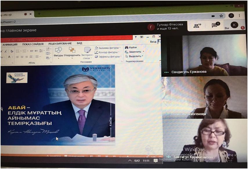 27 сәуір күні Yessenov University-де Абай Құанбайұлының 175 жылдығына арналған онлайн форматта «Өлең - сөздің патшасы, сөз - сарасы» атты Абай өлеңдерін оқу, әндерін орындаудан университетішілік челлендж онлайн байқауы өтті.