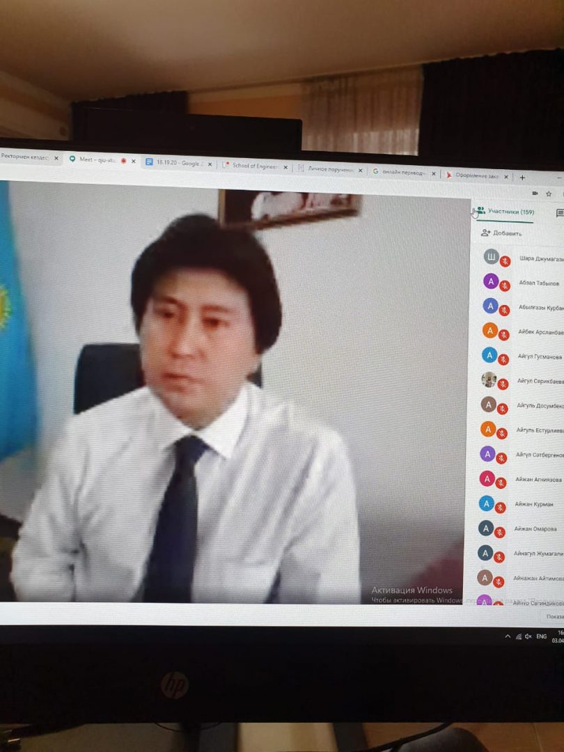 3 сәуір күні Yessenov University ректорының университеттің профессорлық-оқытушылық құрамы мен қызметкерлерімен онлайн-кездесуі өтті.