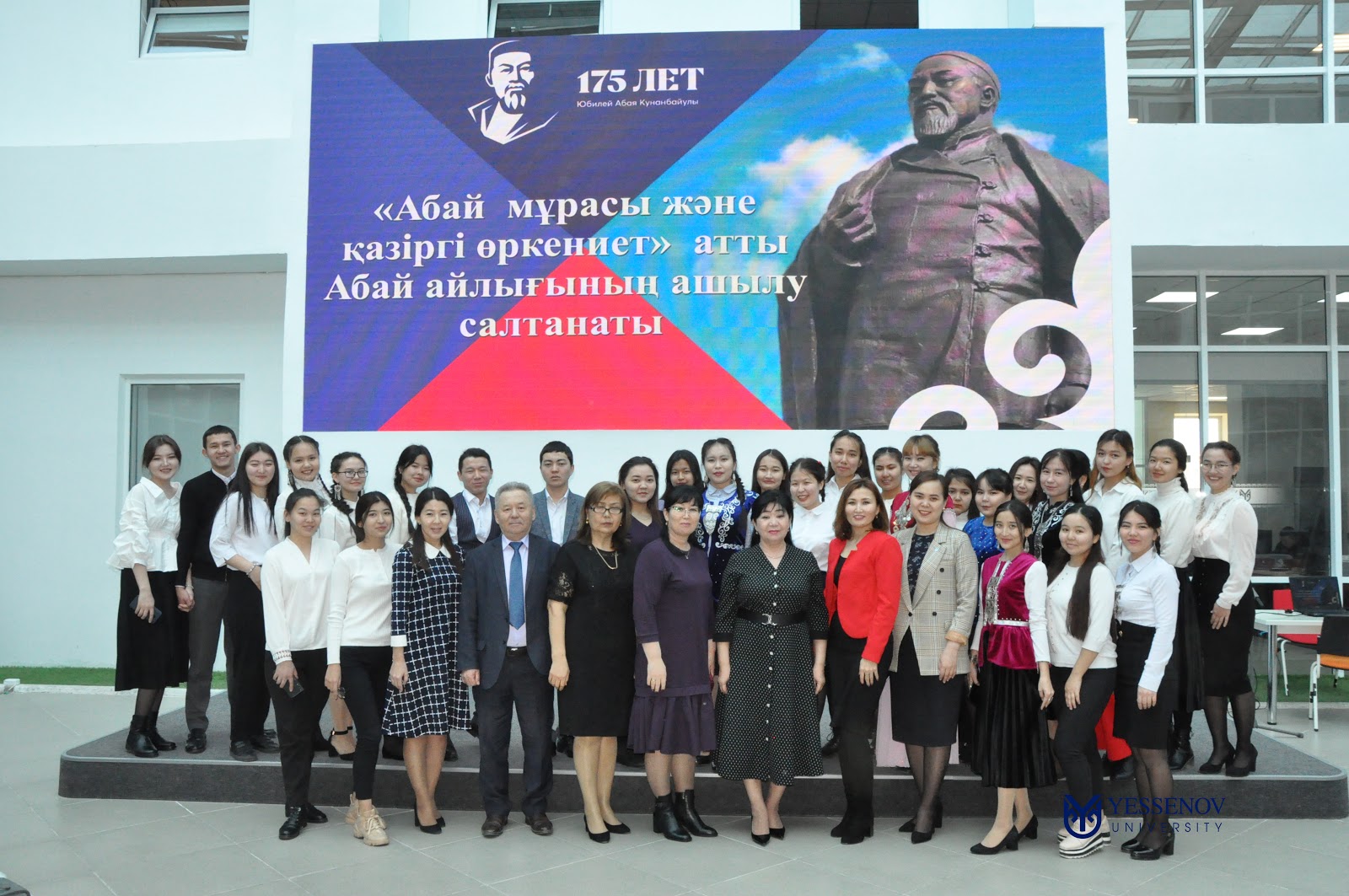 Yessenov University-де қазақ халқының ұлы ақыны, ағартушысы,ойшылы, саясаткер, жазба әдебиеттің негізін қалаушы ұлы Абай Құнанбайұлының туғанына  175 жылдығына арналған «Абай мұрасы және қазіргі өркениет» атты Абай күндерін өткізудің ашылу салтанаты болды.