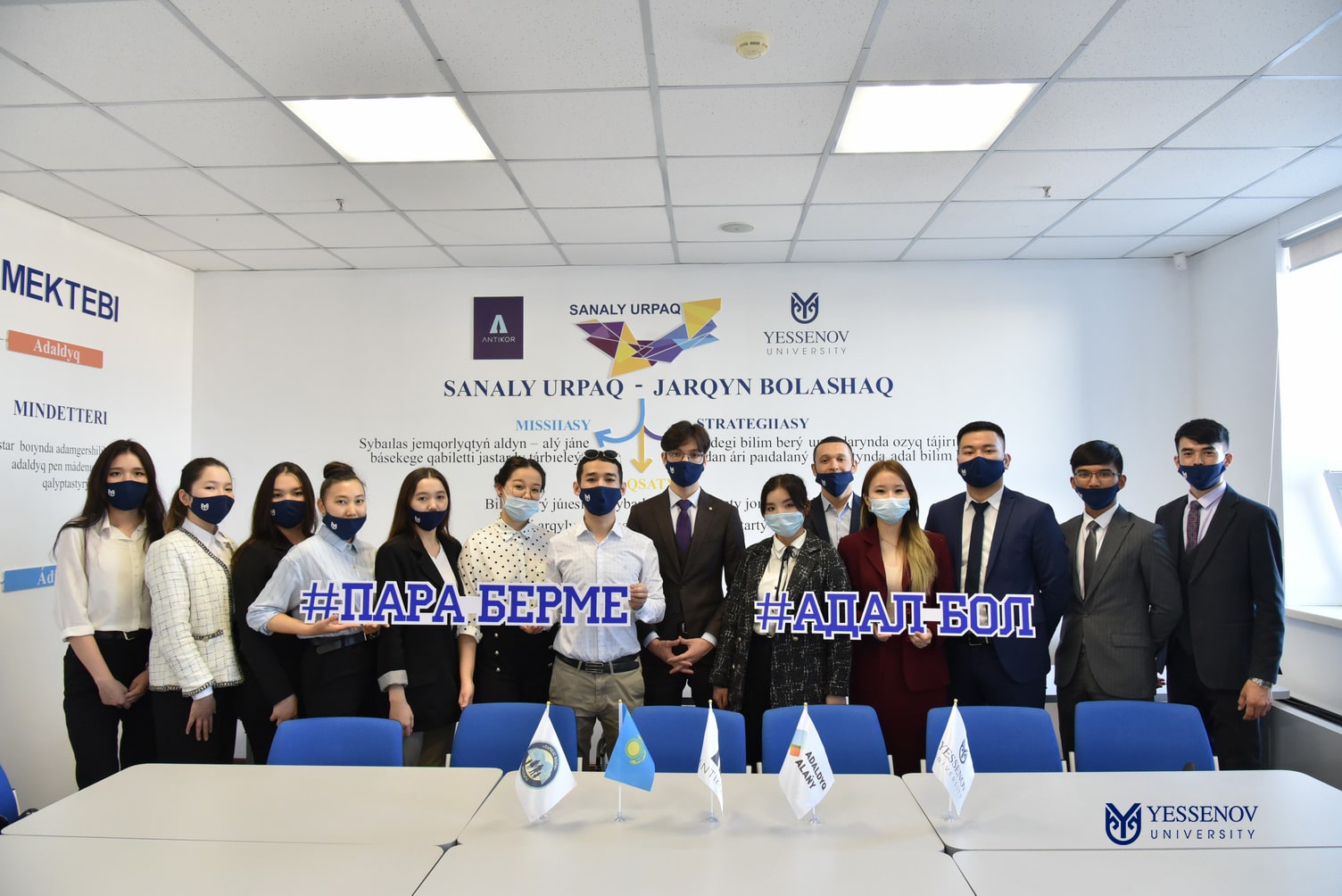 2 сәуір күні Yessenov University-дің «SANALY URPAQ» клубының белсенді студенттері «Саналы ұрпақ» жобасы аясында жастардың бойында сыбайлас жемқорлыққа қарсы мінез-құлық, білім беру процесінде сыбайлас жемқорлық көріністеріне төзбеушілік дағдыларын қалыптастыру мақсатында «Адал бол», «Пара берме» челленджін ұйымдастырып, осы челленджді университеттің басқа факультеттеріне жолдайды.