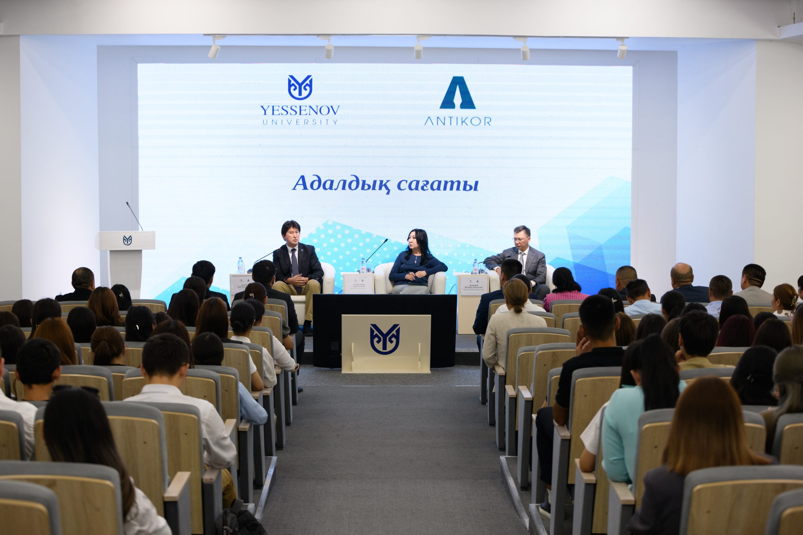 On September 5, Yessenov University hosted the “Hour of Integrity.” The event was attended by Sh. A. Shamenov, Head of the Department of the Agency of the Republic of Kazakhstan for Combating Corruption in the Mangystau region; Z. T. Esbergenova, Deputy Akim of the region; employees of the agency; representatives from the regional Departments of Education; as well as university faculty and students.