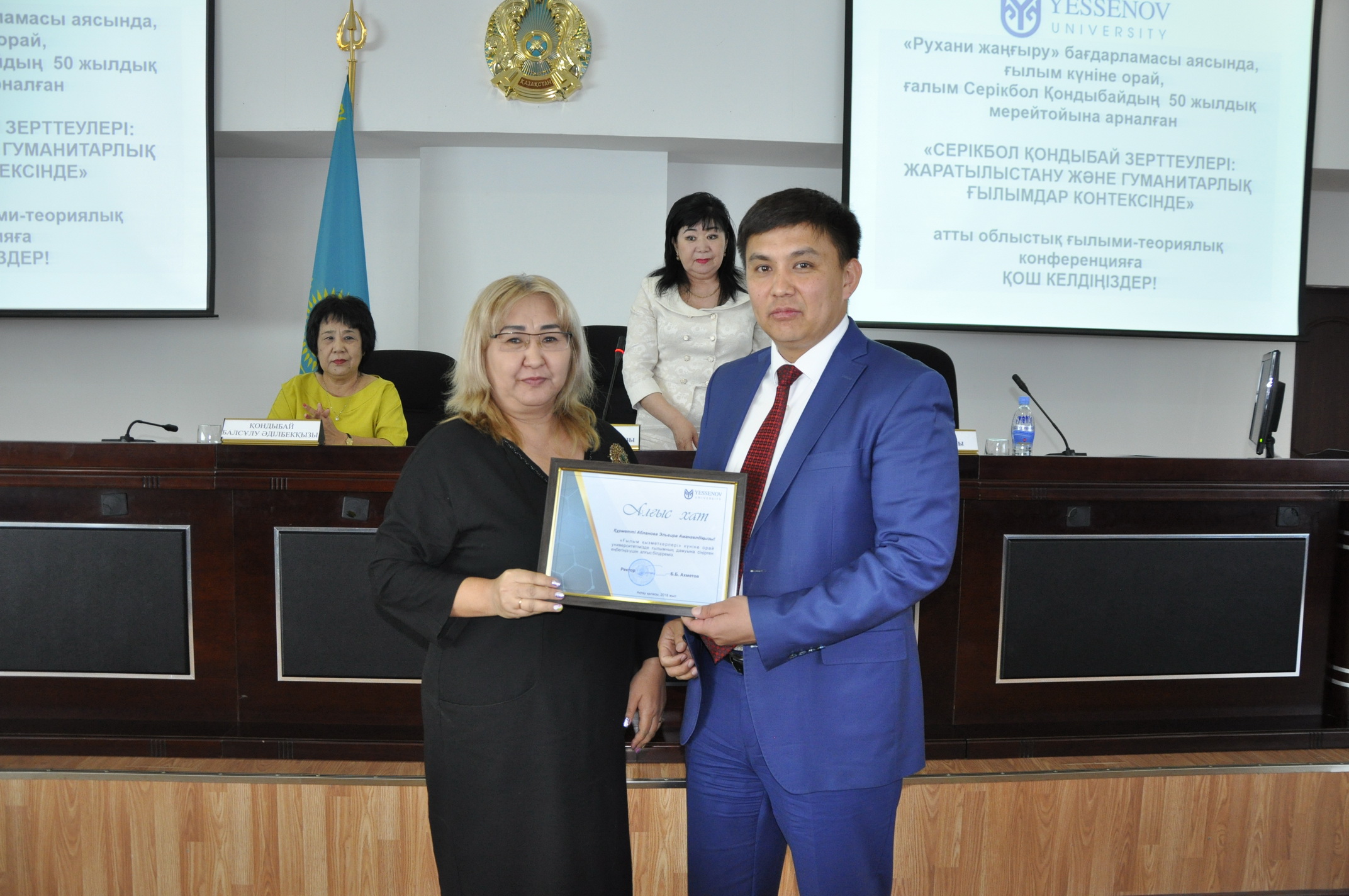 12 сәуірі күні «Рухани жаңғыру» бағдарламасы аясында, ғылым қызметкерлері күніне орай, Yessenov university-де «Педагогика» факультетінің ұйымдастыруымен ғалым Серікбол Қондыбайдың 50 жылдық мерейтойына арналған «Серікбол Қондыбай зерттеулері: жаратылыстану және гуманитарлық ғылымдар контексінде» атты облыстық ғылыми-теориялық конференция өтті. Конференцияға өлкетанушы-ғалымдар, университеттің профессор-оқытушылар құрамы, магистранттар және студенттер қатысты.