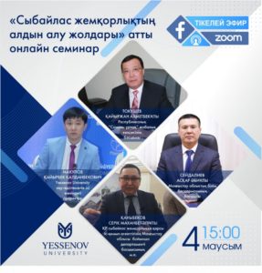 4 маусым күні сағат 15:00-де Zoom платформасында «Сыбайлас жемқорлықтың алдын алу жолдары» атты онлайн семинар өтеді.