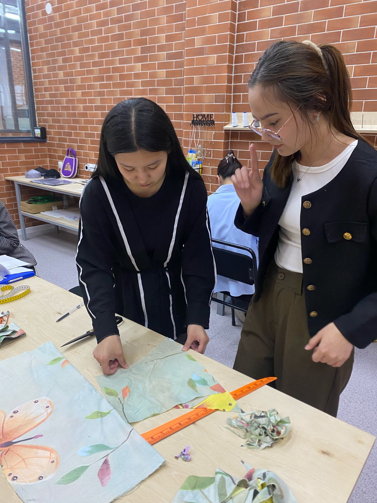 3. “Basics of Sewing” – in practical sessions, students acquire basic knowledge about materials, cutting and sewing techniques, and learn to work with sewing equipment. Course instructor — seamstress Anel Amangeldievna Orinbasarova.