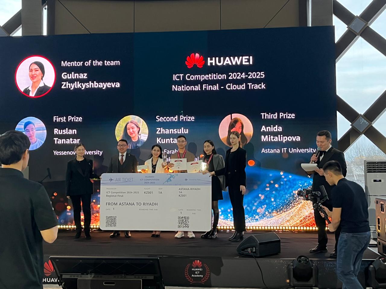 At the National Final of the Huawei ICT Competition 2024-2025, Yessenov University student Ruslan Tanatar, a third-year Computer Engineering major, secured 1st place in the Cloud Track category!