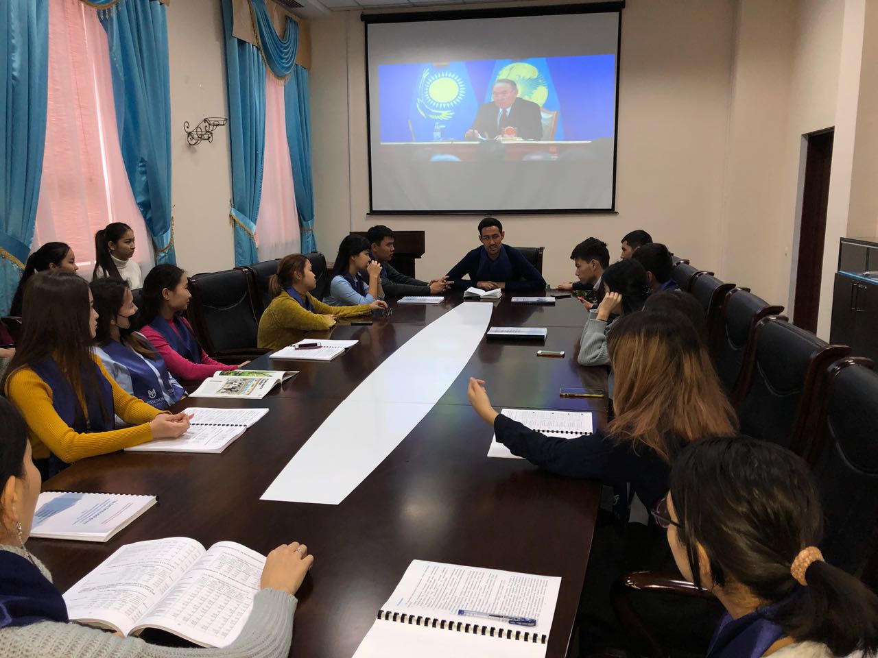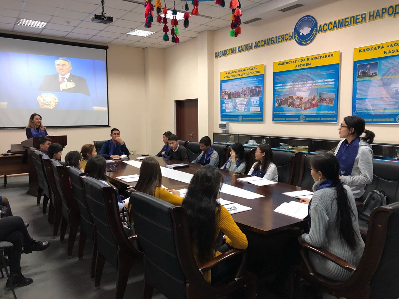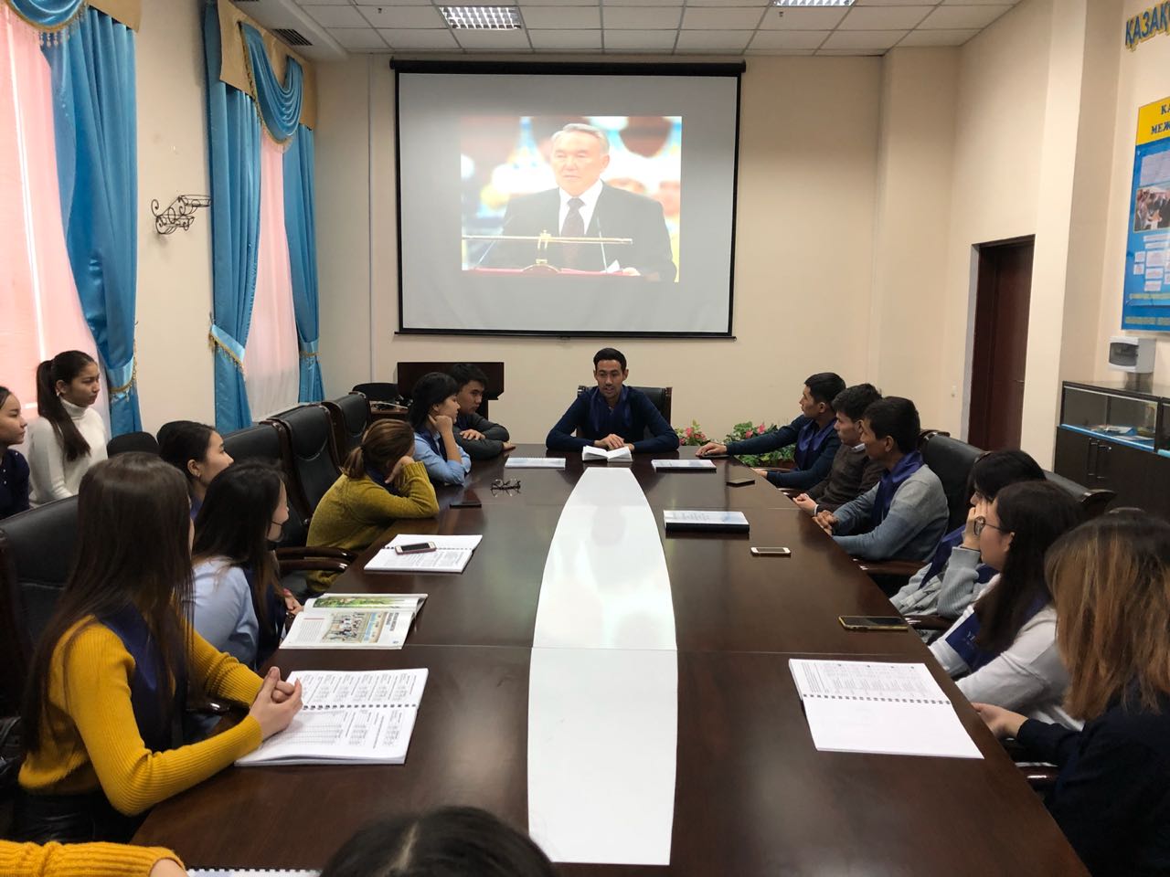 Yessenov University «Базалық» факультеті, «Қазақстан халқы Ассамблеясы» кафедрасының оқытушысы Бағдатұлы Міржақыптың ұйымдастыруымен «Тұңғыш Президент күні» мерекесіне орай және Елбасымыздың «Ұлы даланың жеті қыры» атты жарияланған мақаласы аясында студенттермен «Көшбасшы жолы» атты дөңгелек үстел өткізілді.