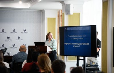 On September 6, Madison Watts, a Fulbright English Language Teaching Assistant (ELTA) fellow, and Asiyat Suleimenova, coordinator of academic exchange programs at the U.S. Embassy, met with the faculty of Yessenov University.