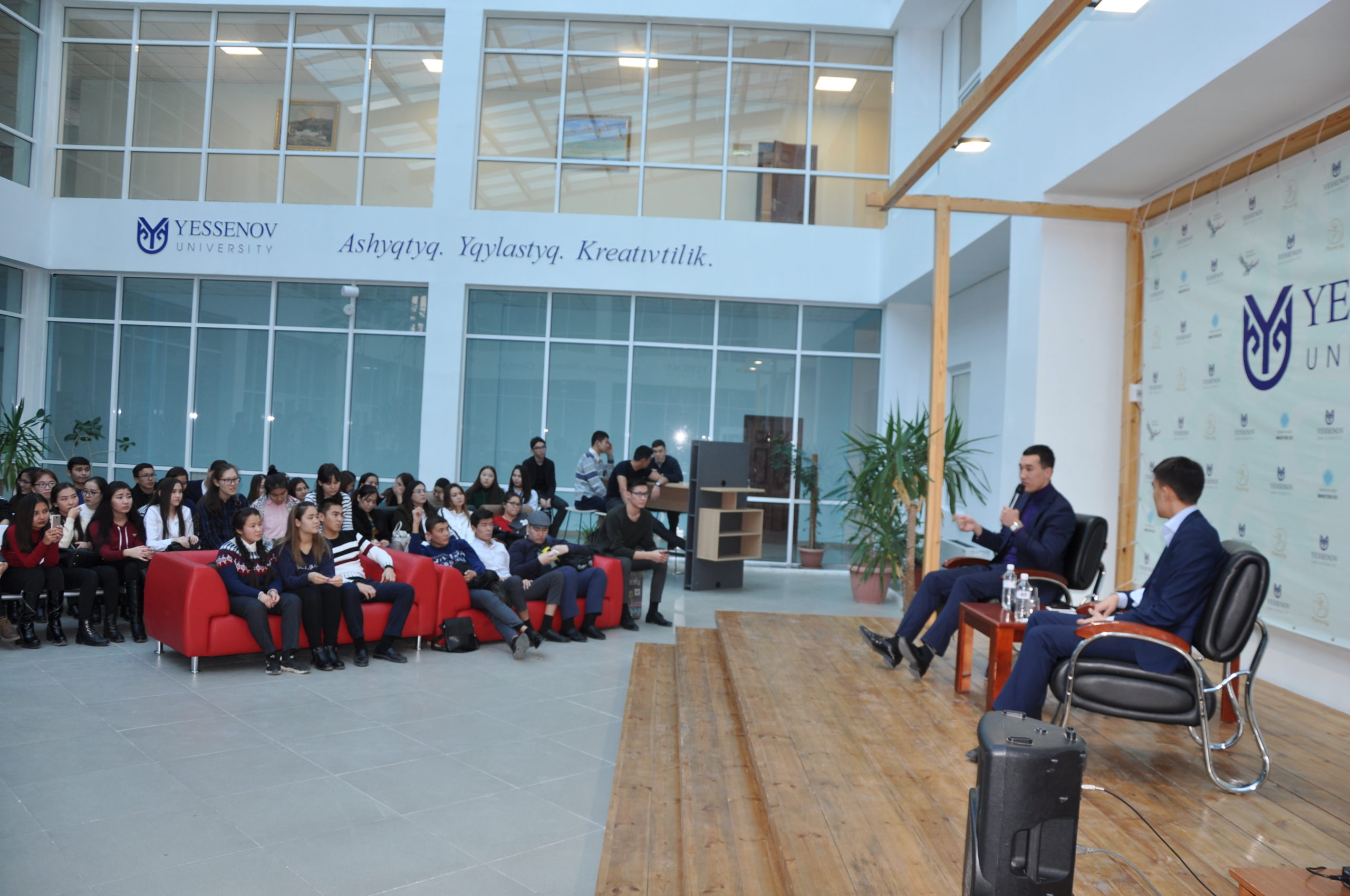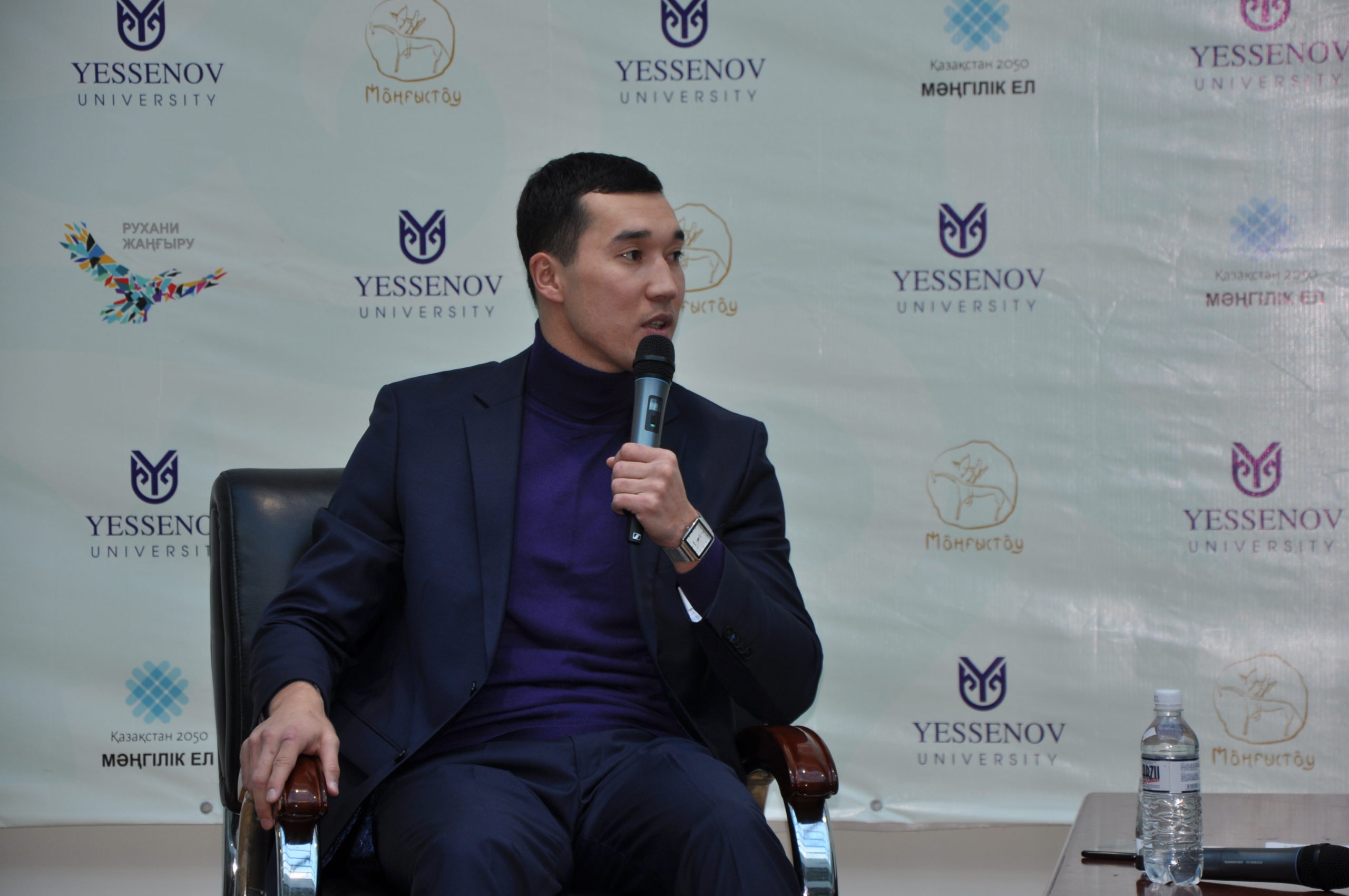 Yessenov University-де #PublicTalk жобасы аясында Олимпиада ойындарының күміс жүлдегері, Қазақстанның еңбек сіңірген спорт шебері, Бокстан Қазақстан Республикасы құрамасының капитаны Әділбек Ниязымбетовпен кездесу өтті.