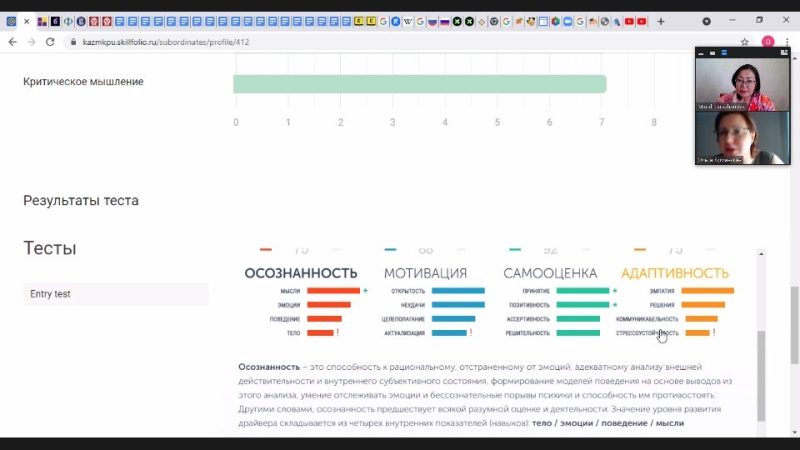 The courses are attended by 109 trainees. Mastering the knowledge of the course “Development of tutoring competencies of a modern teacher by means of the digital platform Skillfolio” is planned for a month. The workshops include diagnosis and dynamics of development of SOFT SKILLS: emotional intelligence, teamwork, communication, creative, critical, systemic and digital thinking, active discussion of practical tasks. At the end of the course students will be awarded certificates.