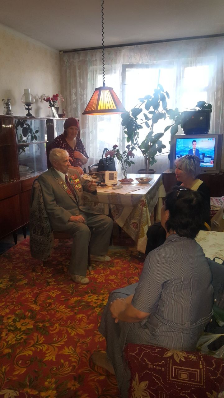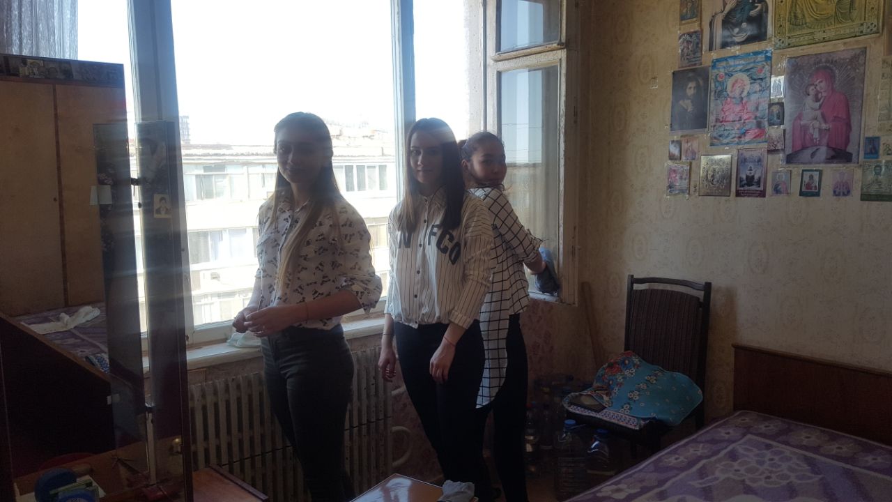 Тәрбие және әлеуметтік жұмыс бөлімінің қызметкерлері бастап жоба үйлестірушісі Ирина Бисингалиева мен студент-еріктілер тобының мүшелері Жалғасбаева Салтанат, Бүркітова Нұрболған, Бекжанова Гүлден, Касумова Арзу, Тувакова Валентина және Измуханова Аймира Николаева Алла Александровнаның және Самсоновтар отбасына барып, олардың жағдайларымен танысып, қолғабыс көрсетті.