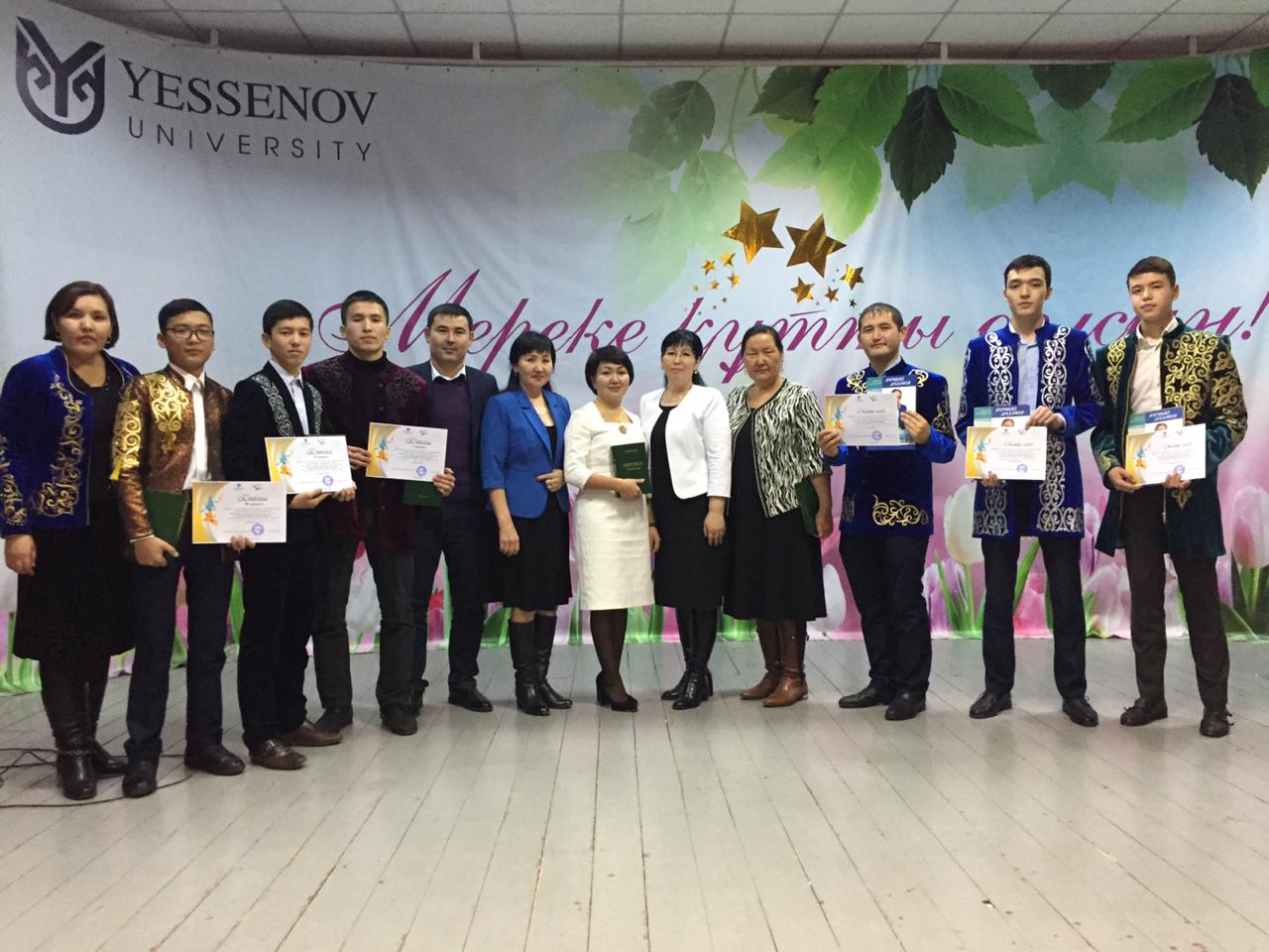 “Педагогика” факультетінің ұйымдастыруымен «Рухани жаңғыру» бағдарламасы аясында, “Тәуелсіздік – жырым менің мәңгілік” тақырыбында облыстық «Жыр жебе» ақындар мектебімен бірлесіп жас ақындар айтысын өткізді. Ақындар айтысының мақсаты – ата-бабаларымыздың табан ақы, маңдай терімен, найзаның ұшы, білектің күшімен келген Тәуелсіздігімізді жырға қосып, ұрпақ бойында елге, ұлтқа, туған топыраққа деген патриоттық сезімді орнықтыру, ұлттық құндылықтарымызды дәріптеу. Айтысқа үш жұп қатысты, олардың әрқайсысы өз мақамымен, шеберлігімен көрермен жүрегінен орын алды. Айтыстың өз деңгейінде өтуіне үлесін қосқан Жыр жебе ақындар мектебіне және оның жетекшісі Фархад Мусаевқа алғысымызды білдіреміз! Айтыс қорытындысында қатысушыларды факультет деканы Көшімова Бибатпа Әмірханқызы дипломдармен, алғыс хаттармен марапаттады.