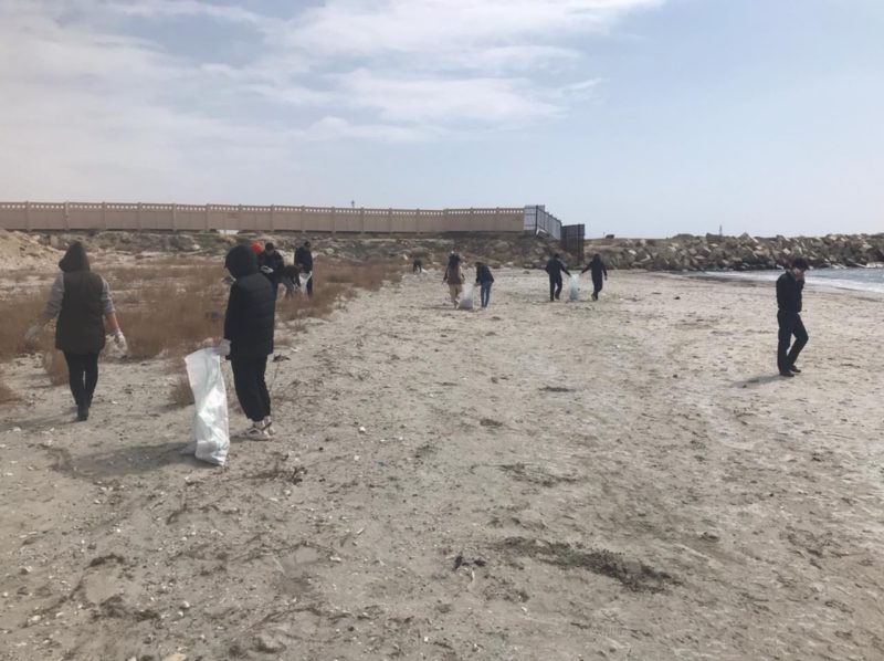 2 сәуір және 9 сәуір күндері Yessenov University Волонтерлік қозғалыстың студенттері, экологиялық бағыт бойынша Ақтау қаласындағы Приморский ықшам ауданы және 43 км-дегі теңіз жағалауларында тазалық жұмыстарын жүргізді.