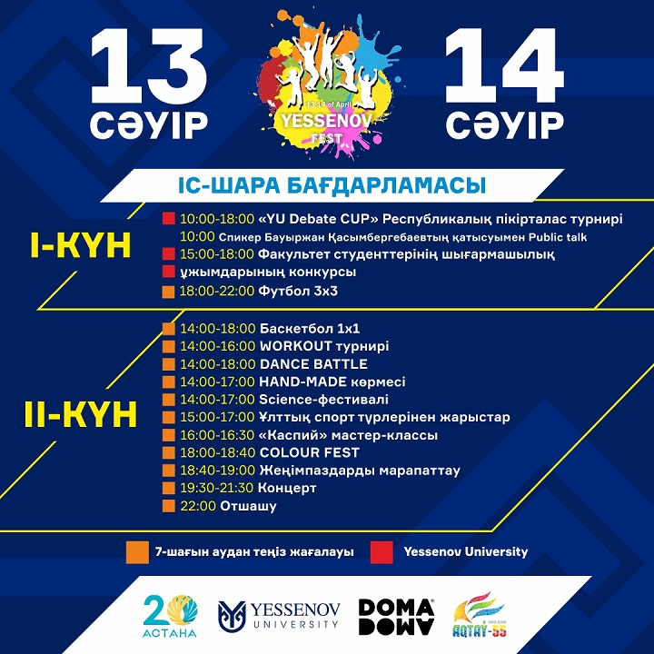 2018 жылдың 13-14 сәуір күндері Біз студенттік көктем маусымын ашамыз! «YESSENOV FEST»-ке қош келдіңіздер!