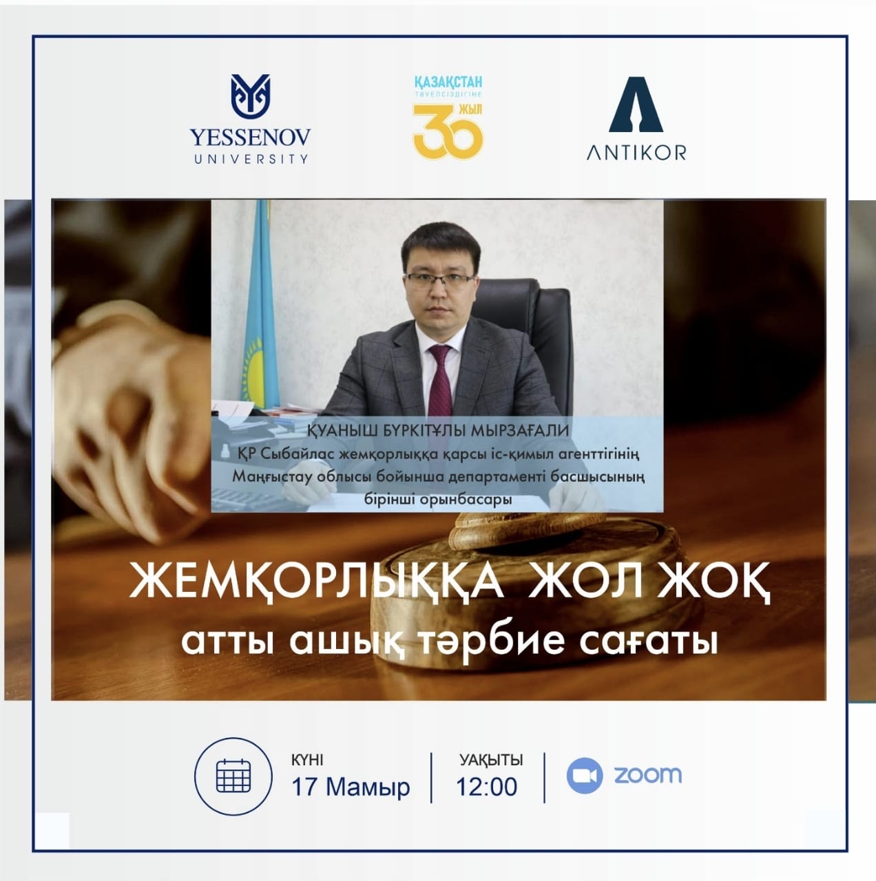 17 мамыр күні Инжиниринг факультетінде сыбайлас жемқорлықтың алдын алу, саяси өмір туралы ақпараттандырылған тұлғаны қалыптастыру, Отанға адал қызмет етуге тәрбиелеу мақсатында «Жемқорлыққа жол жоқ!» онлайн шара өткізілді.