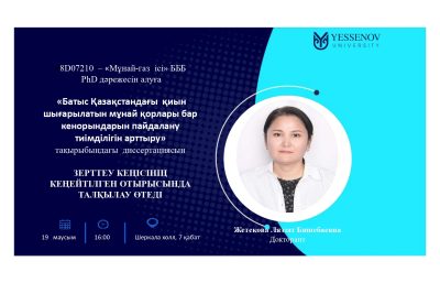 06/19/2024 at 15:00 in the Sherkala Hall, a discussion will take place at an expanded meeting of the research council for the degree of RhD OP 8D07210 – “Oil and Gas business”