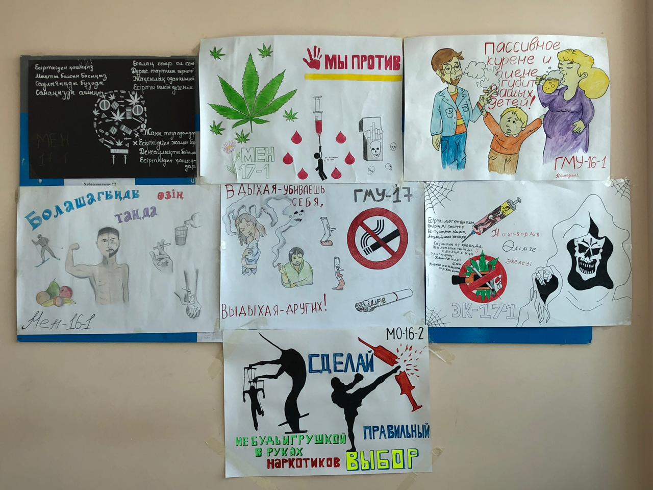 Есірткі және психотропты заттарды қолданудың алдын-алу аясында өткізуге жоспарланған іс-шаралар жоспарын орындау мақсатында «Менеджмент» кафедраcының ұйымдастыруымен «Бизнес және құқық» факультеті студенттері арасында «Есірткіге жол жоқ» атты қабырға газеті байқауы өтті.