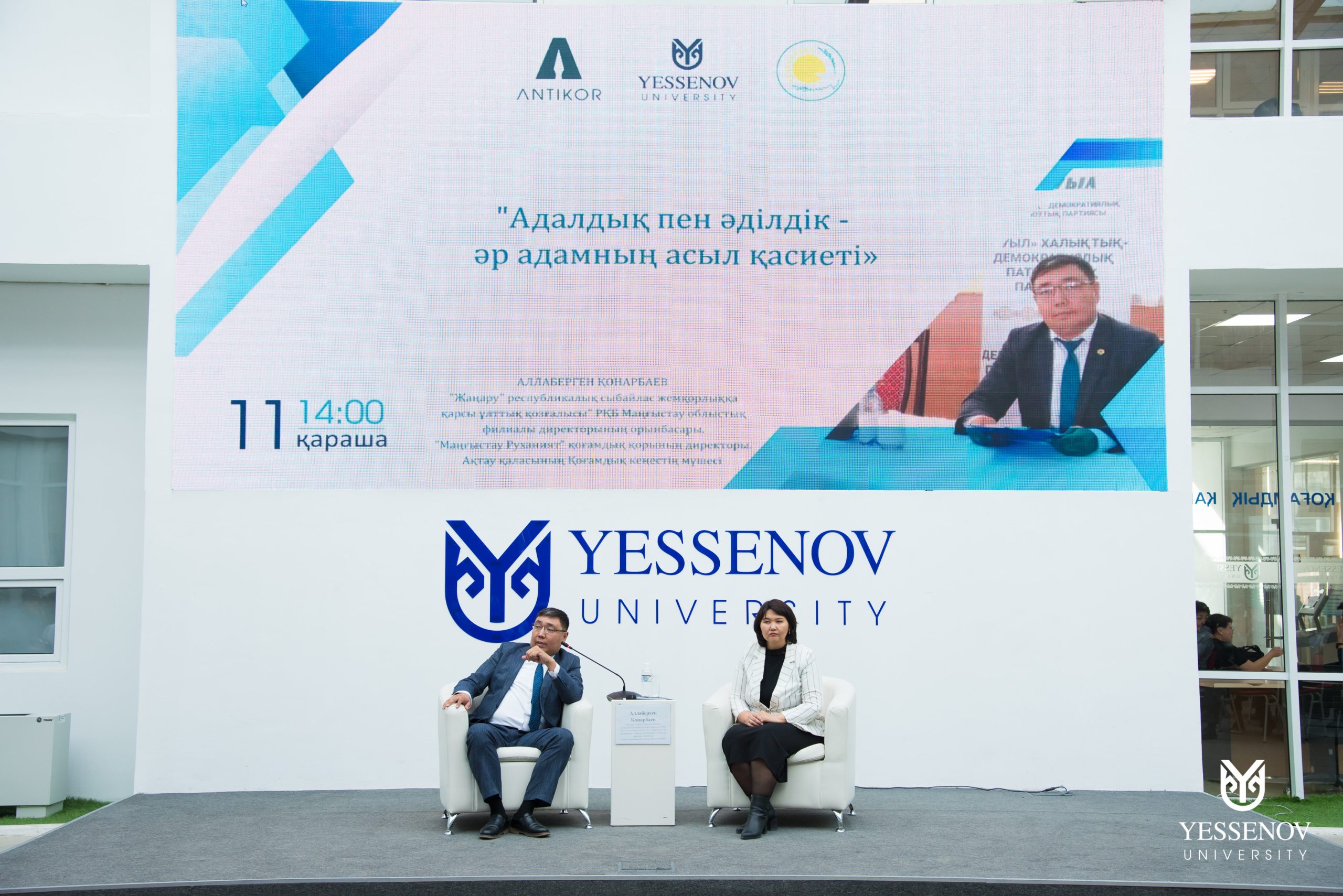 11 қараша күні Yessenov University “Ауыл” ХДПП МОФ төрағасы, Ақтау қаласының Қоғамдық кеңестің мүшесі журналист Аллаберген Əзірбайжанұлы Қонарбаевтың студенттермен кездесу өткізілді.