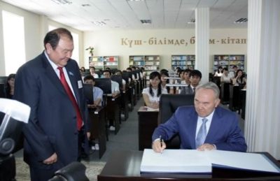 Елбасы университеттің құрметті меймандар тілек жазатын Құрмет кітабына алғашқы болып өзінің мынадай тілегін жазып, қолтаңбасын қалдырды: