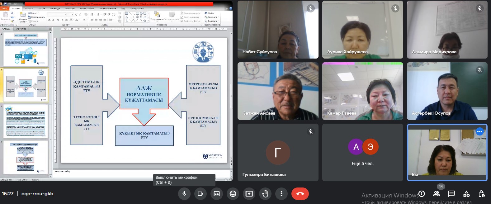 Онлайн форматта ұйымдастырылған тренингке 17 тыңдаушы қатысты. Жоғары білікті жаттықтырушы онлайн аудиторияны «АСА ТРАНС СЕРВИС» ЖШС кәсіпорнындағы өндірістік стратегиямен және техносфералық қауіпсіздікті басқарудың негізгі бағыттарымен, қауіпсіздік техносферасын басқарудың заңнамалық және нормативтік-құқықтық негіздерімен таныстырды. Тыңдаушыларға «Техносфералық қауіпсіздікті басқару» курсының негіздері бойынша презентациялар, бейнематериалдар көрсетілді, Техносфералық қауіпсіздікті бойынша жаңа ақпараттар ұсынылды, өндірістегі техносфералық қауіпсіздіктің кең ауқымды мәселелері мен өзекті мәселелерін курс тренері «АСА ТРАНС СЕРВИС» ЖШС жағдайында техносфералық қауіпсіздікті тиімді ұйымдастыру және басқару бойынша өндірістік тәжірибесімен бөлісті.