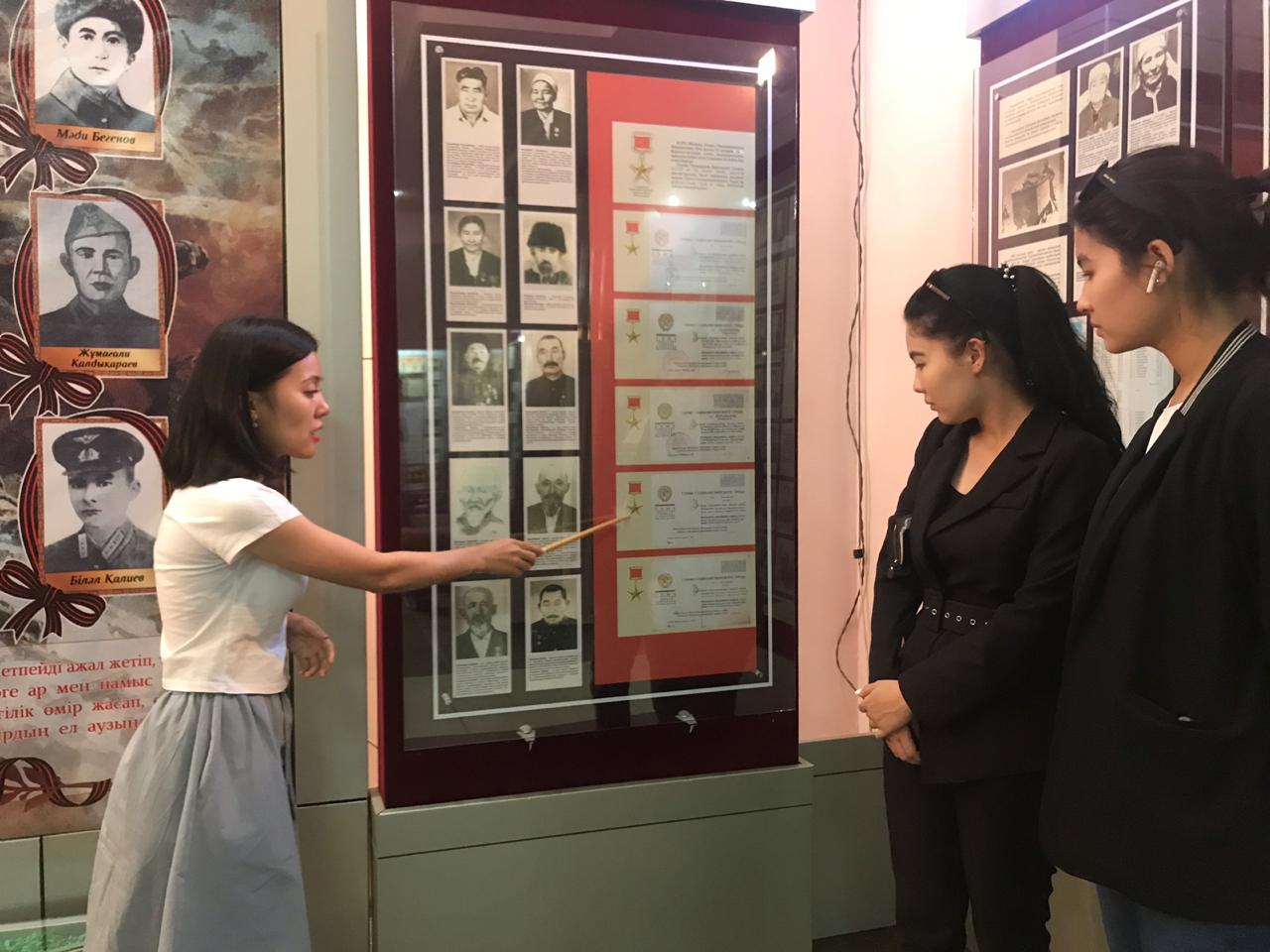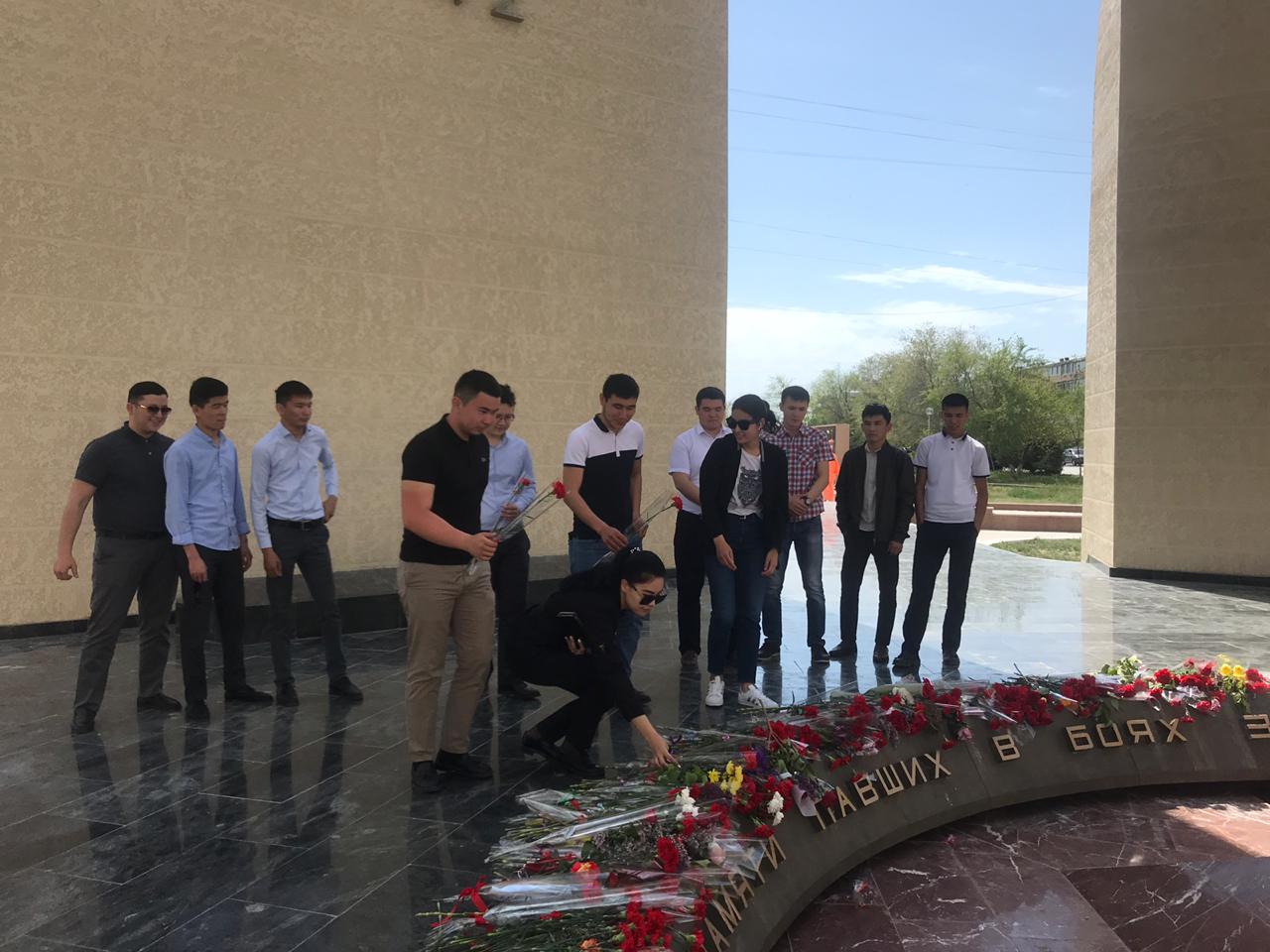 «Бизнес және құқық» факультеті «Құқықтану» кафедрасының студенттері Ұлы Жеңіс күніне орай «Мәңгілік алау» монументіне тағзым етіп, Маңғыстау облыстық тарихи-өлкетану мұражайының Жеңіс күніне арнап дайындаған тақырыптық көрмесін тамашалады. Мұрағаттан алынған құнды мәліметтер мен сирек кездесетін суреттер білім алушылардың ерекше қызығушылық тудырды.