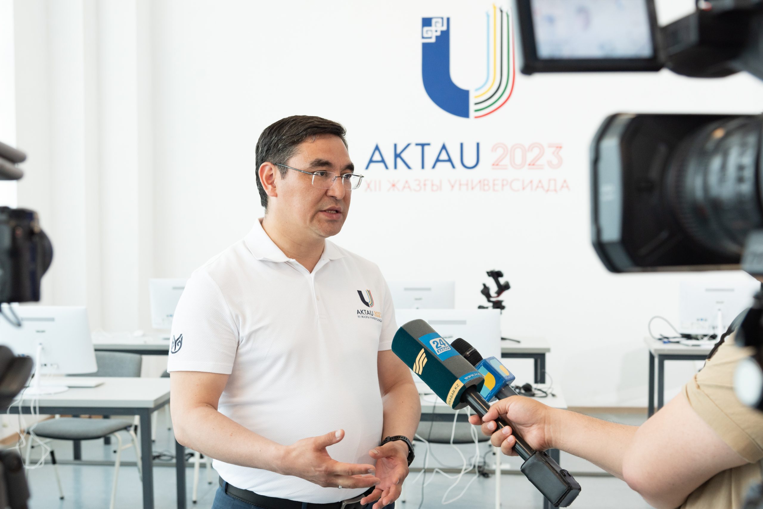 Вице-министр іссапарын XII жазғы Универсиада ойындарын өткізу жұмыстарымен танысудан бастады. Алдымен Yessenov Sport Club кешенін аралап шықты. Универсиаданың жарыс кестесіндегі тоғызқұмалақ, шахмат, футзал ойындарын көрді.
