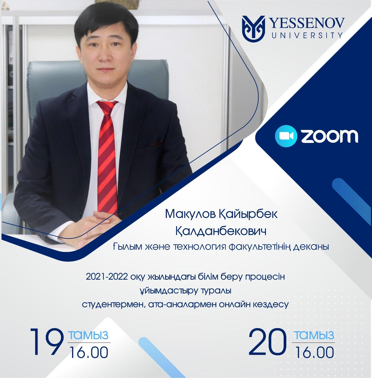 19-20 августа состоится встреча студентов и родителей факультета “Науки и технлогии” с деканом Макуловым Кайырбеком Калданбековичем.