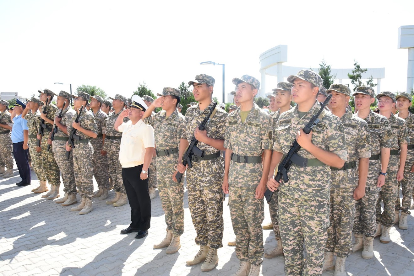 С напутственными словами и поздравлениями выступили Исполнительный вице-президент Yessenov University Ермек Нұрмағанбет, а также ветераны вооруженных сил и лучшие курсанты.