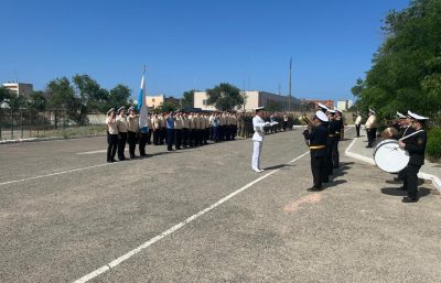 Торжественный митинг, посвященный началу учебных сборов традиционно начался с вноса боевого Замени Военно-морских сил и Государственного Гимна Республики Казахстан. С приветственным словом на митинге выступил начальник военной кафедры капитан 2 ранга запаса К. Тюлебаев. Далее курсантам были доведены требования приказов Министра Обороны Республики Казахстан и начальника Актауского гарнизона о прохождении учебных сборов.