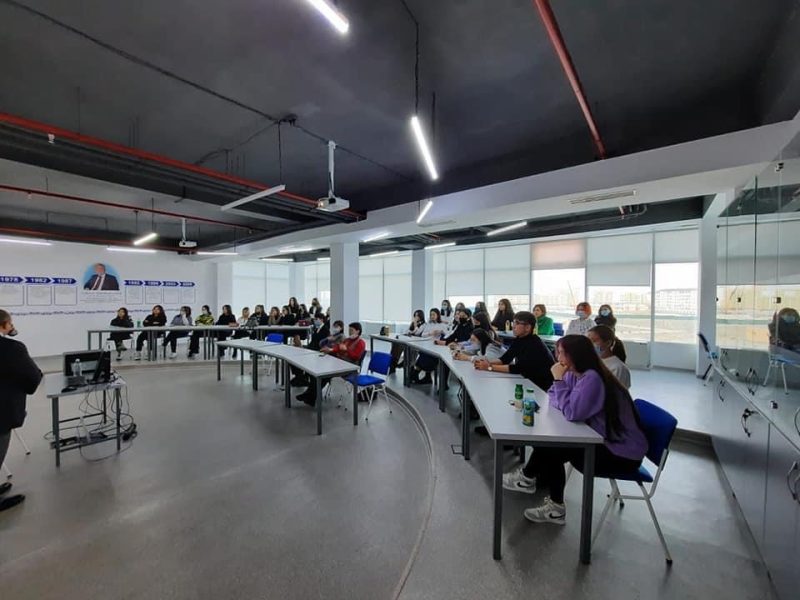 13 декабря в Yessenov University Генеральный консул Азербайджанской Республики Эльмар Мамедов прочитал студентам специальности «Международные отношения» лекцию по случаю «12 декабря — Дня памяти Гейдара Алиева».