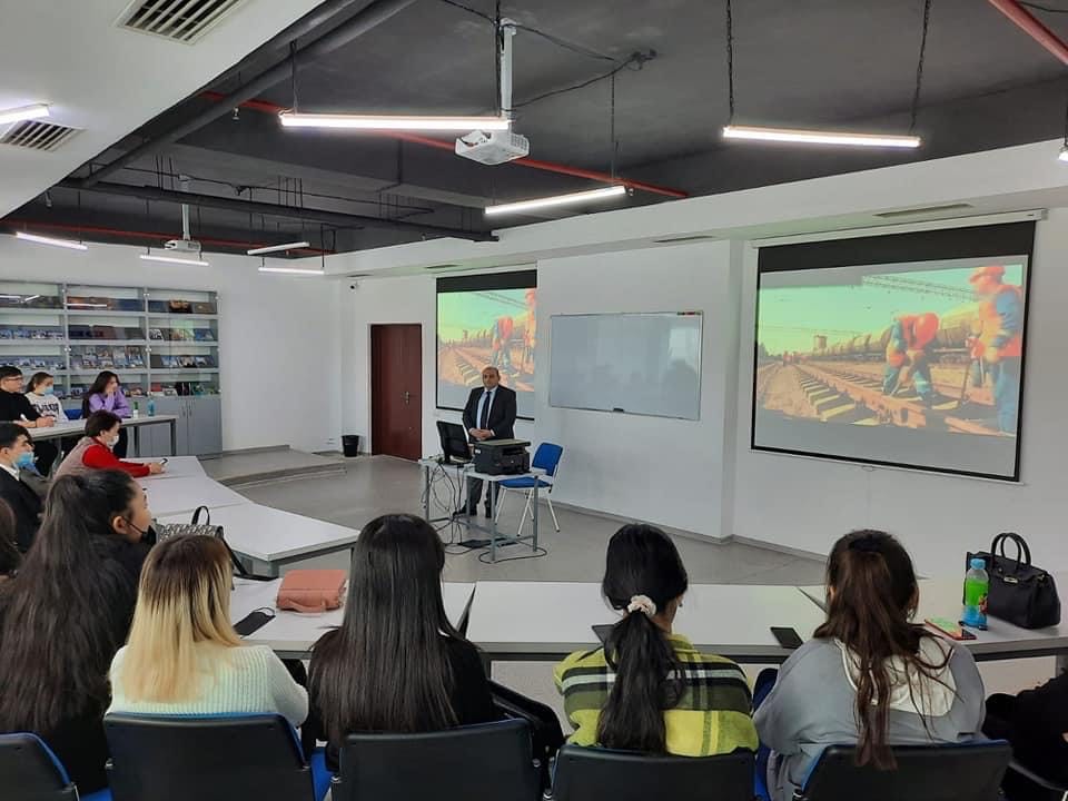 Также студентам был показан небольшой документальный фильм о Гейдаре Алиеве.