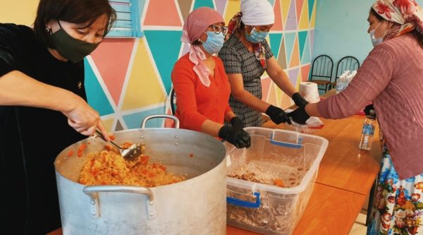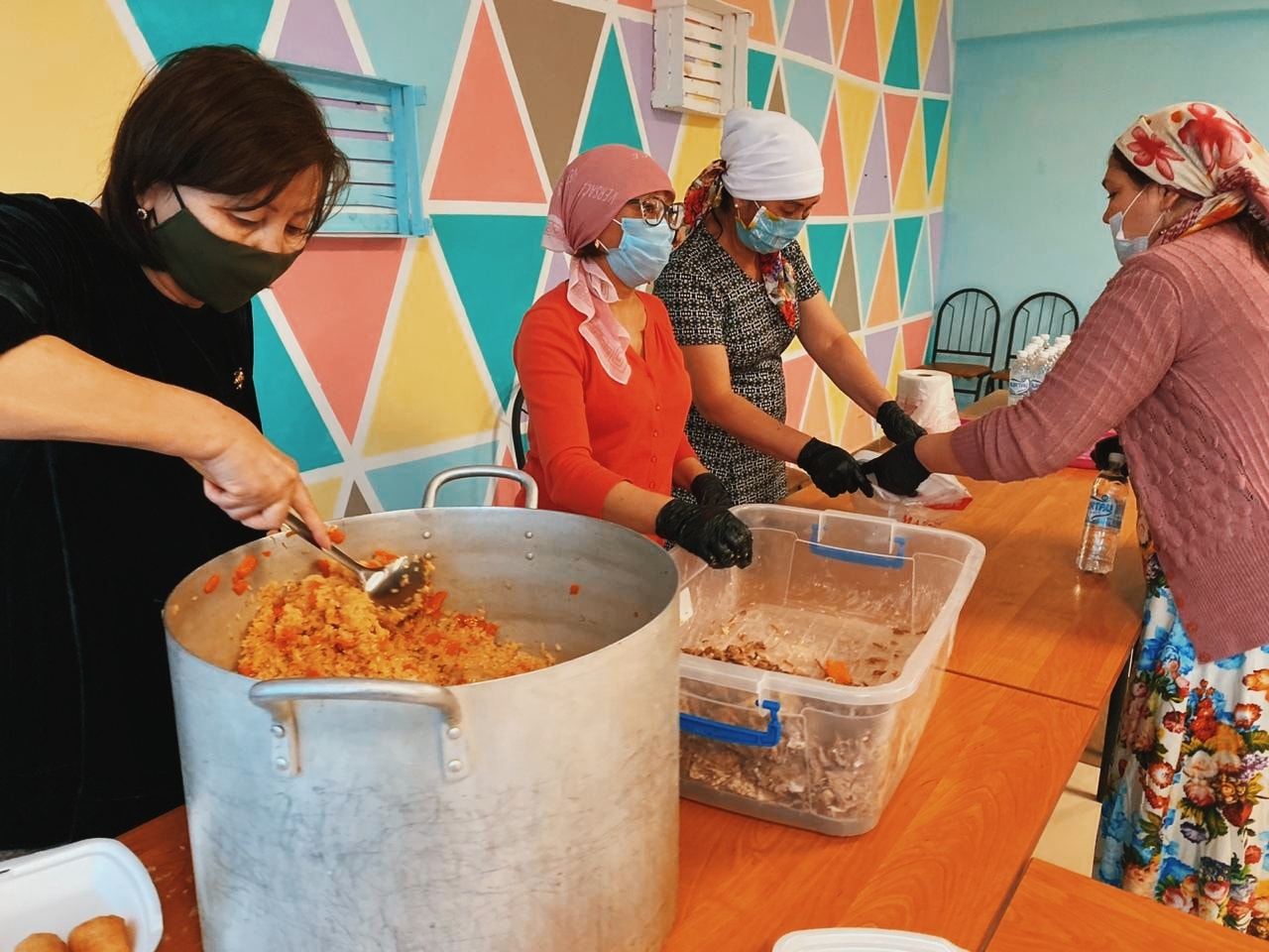 В условиях карантина блюда раздавались бесконтактно в специальной посуде.