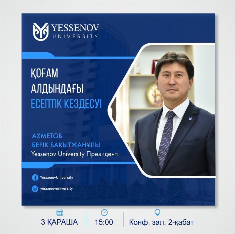 Приглашаем вас принять участие в ежегодном отчетном собрании Президента Yessenov University Ахметова Берика Бакытжановича!
