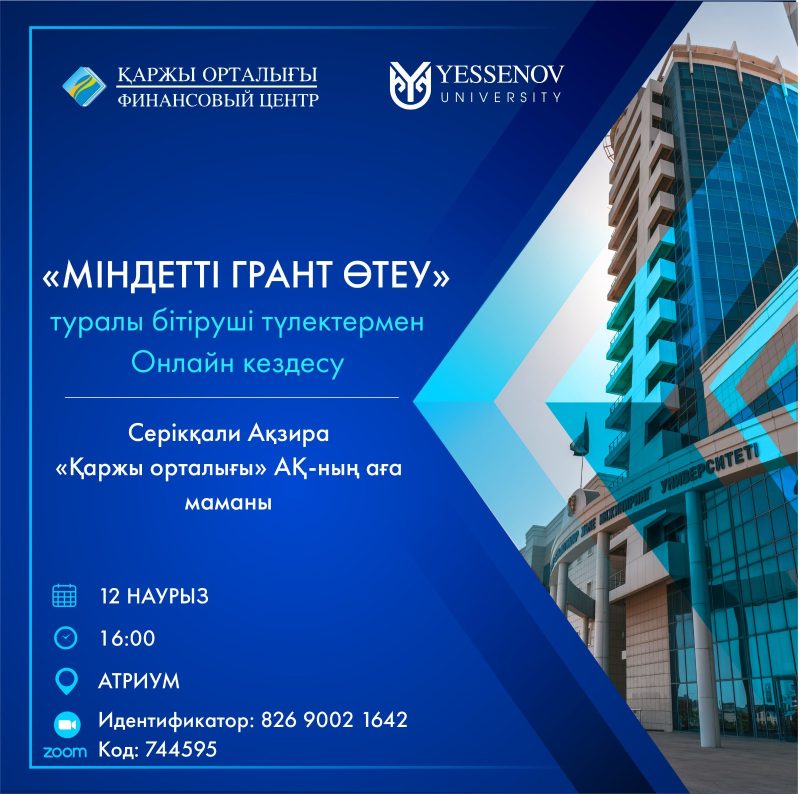Онлайн встреча выпускников, обучающихся по государственному образовательному заказу, с представителем АО «Финансовый центр»
