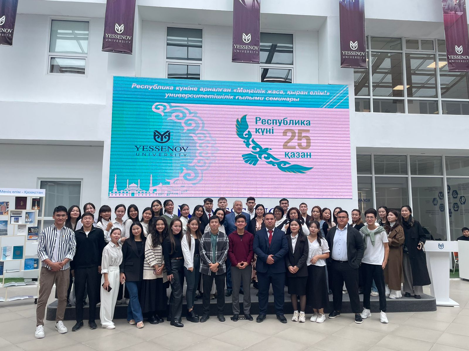 24 октября кафедрой истории был организован торжественный научный семинар «Мәңгілік жаса, қыран елім», посвященный Дню Республики. В ходе мероприятия прозвучал государственный гимн Казахстана, с приветственным словом выступили декан факультета образования Озгамбаева Райхан Умирзаковна и заведующий кафедрой истории, профессор Жаулин Киикбай Мынбаевич. На семинаре был проведен показ художественного документального фильма «Республика күні. Жаңғыру». Далее участники семинара выступили с докладами. Доцент кафедры истории Нурманова Аягоз Кайыргаликызы на тему «Қазақстанның саяси құқықтық негіздері», кандидат исторических наук Китгулов Салим Базарбекулы на тему «Жаңғыруға ұмтылған жаңа Қазақстан», старший преподаватель Отесова Гульнар Екпинкызы на тему «Егемендік декларация тәуелсіздік бастауы», студентка 3 курса специальности “История” Суйндик Аида на тему «Ұлттық жаңғыру кезіндегі Қазақстан мәдениеті». Далее студенты продемонстрировали свое мастерство и провели праздничное мероприятие на высоком уровне.