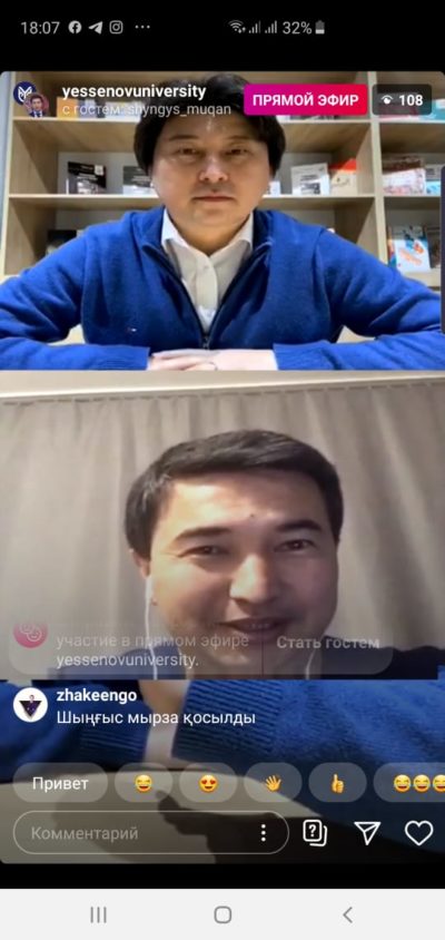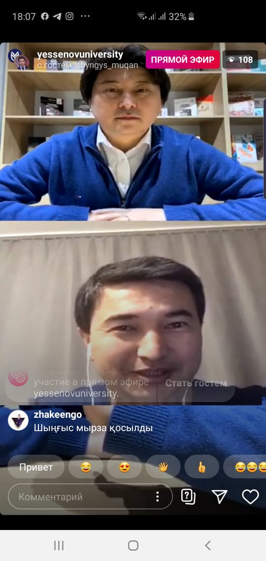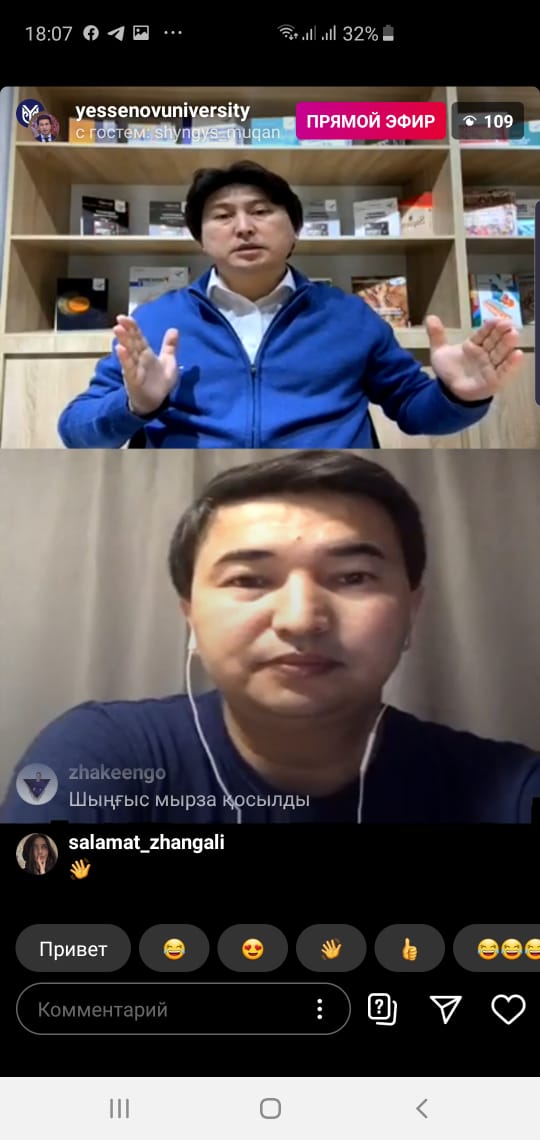 9 апреля ректор Yessenov University Ахметов Берик Бакытжанович вышел в прямой эфир с выпускником Harvard University, основатель Центра лидерского развития Muqan.kz Шынгысом Муканом.