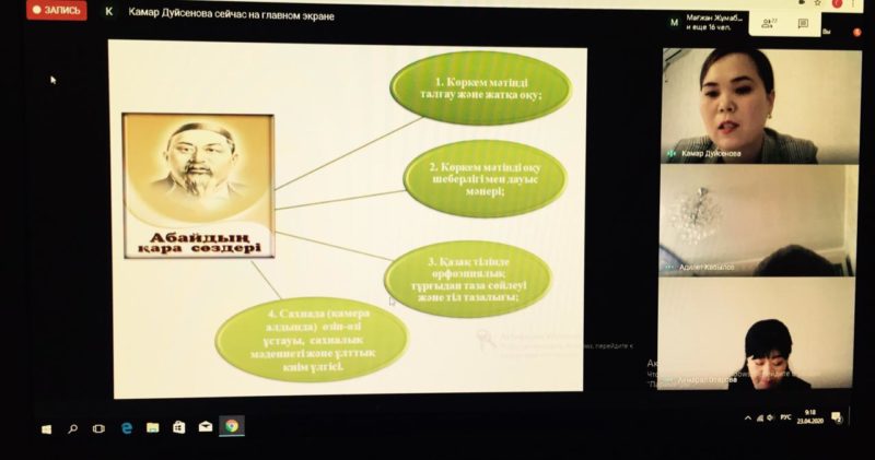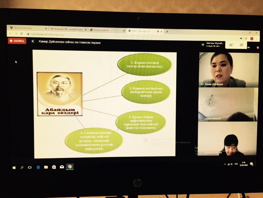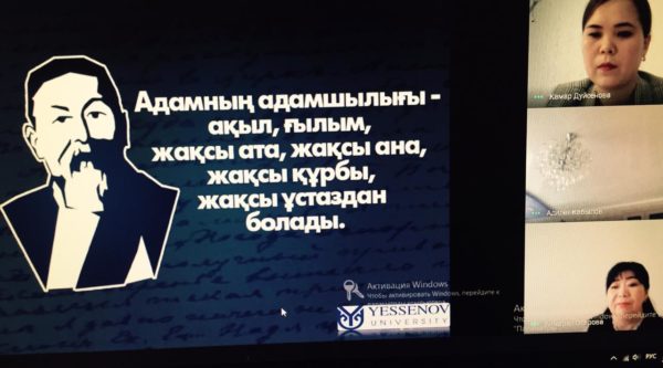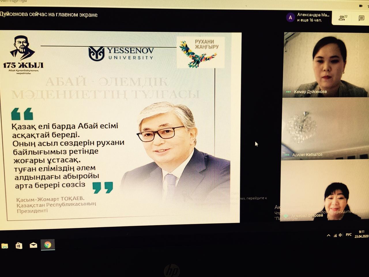 Мероприятие было приурочено к 175-летию Абая Кунанбаева. Конкурс начался со вступительного слова заведующей кафедрой Отаровой А. Н.