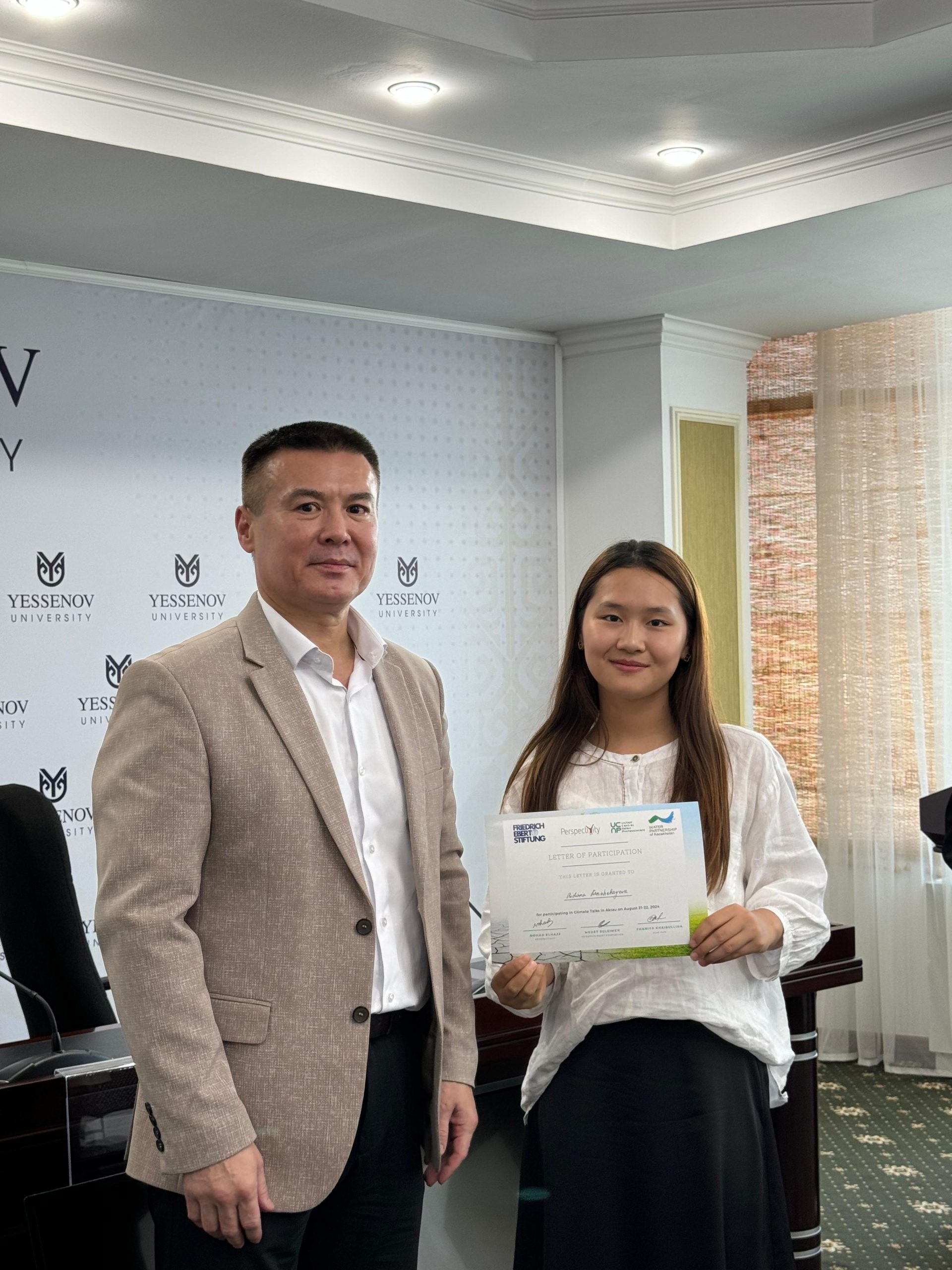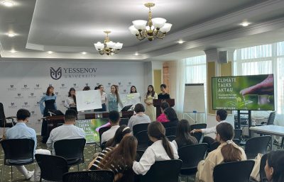 В Yessenov University с 26 по 29 августа состоялся открытый диалог по климату среди молодежи города Актау. Мероприятие было организовано на базе Yessenov University при поддержке Международного фонда Фридриха Эберта. В мероприятии, организованном на трех языках (казахском, русском, английском), приняли активное участие учащиеся 9-10-11 классов Назарбаев Интеллектуальной школы для одаренных детей г. Актау, областной специализированной школы-интерната для одаренных детей с углубленным изучением различных предметов управления образования Мангистауской области и специализированного IT лицея КГУ и студенты 2-3 курсов по ОП «Экология» университета Есенова. В программе диалога была рассмотрена климатическая повестка Казахстана. Обсуждались шаги, которые предпринимаются в нашей стране для борьбы с изменением климата, и как поддержать эти инициативы. Кроме того, были охвачены сессии, посвященные водным ресурсам. Была предоставлена информация о текущем состоянии воды, проблемах и возможных решениях для управления водными ресурсами. Молодежь города принимала активное участие в процессах решения климатических проблем и принятия решений по управлению водными ресурсами. Гостями мероприятия выступили международный организатор по климату и воде Нохад Эльхаж (Королевство Нидерланды), программный менеджер Фонда Фридриха Эберта в Казахстане Медет Сулеймен, исследователь по водной безопасности в Казахстане и ЦА Жания Хайбуллина которая выступила с лекцией для участников. Организатором