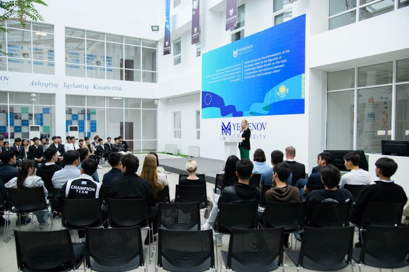 13 мая в Yessenov University состоялась гостевая лекция Посла Европейского Союза в Казахстане Алешки Симкич для студентов Казахско-Немецкого института устойчивой инженерии на тему «Сотрудничество и взаимодействие между Казахстаном и Европейским Союзом».